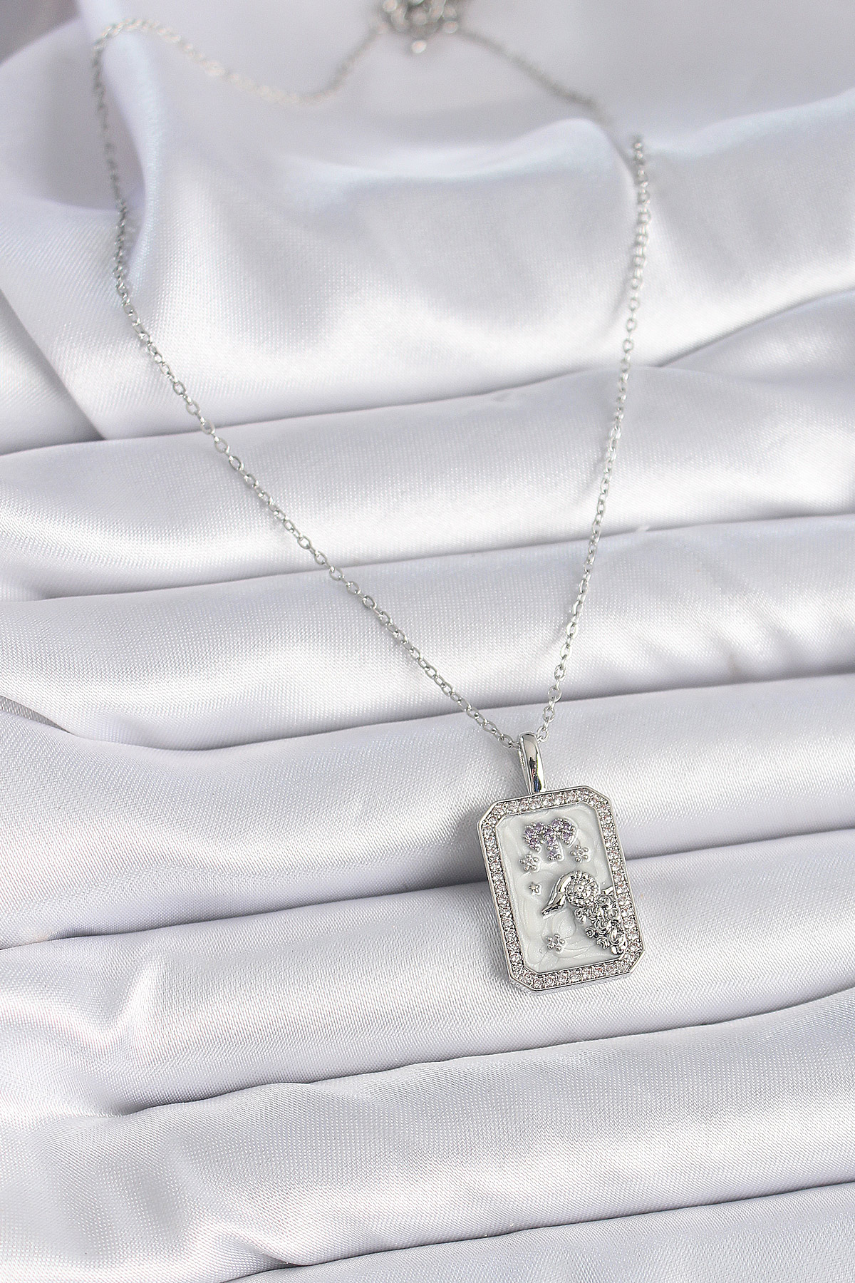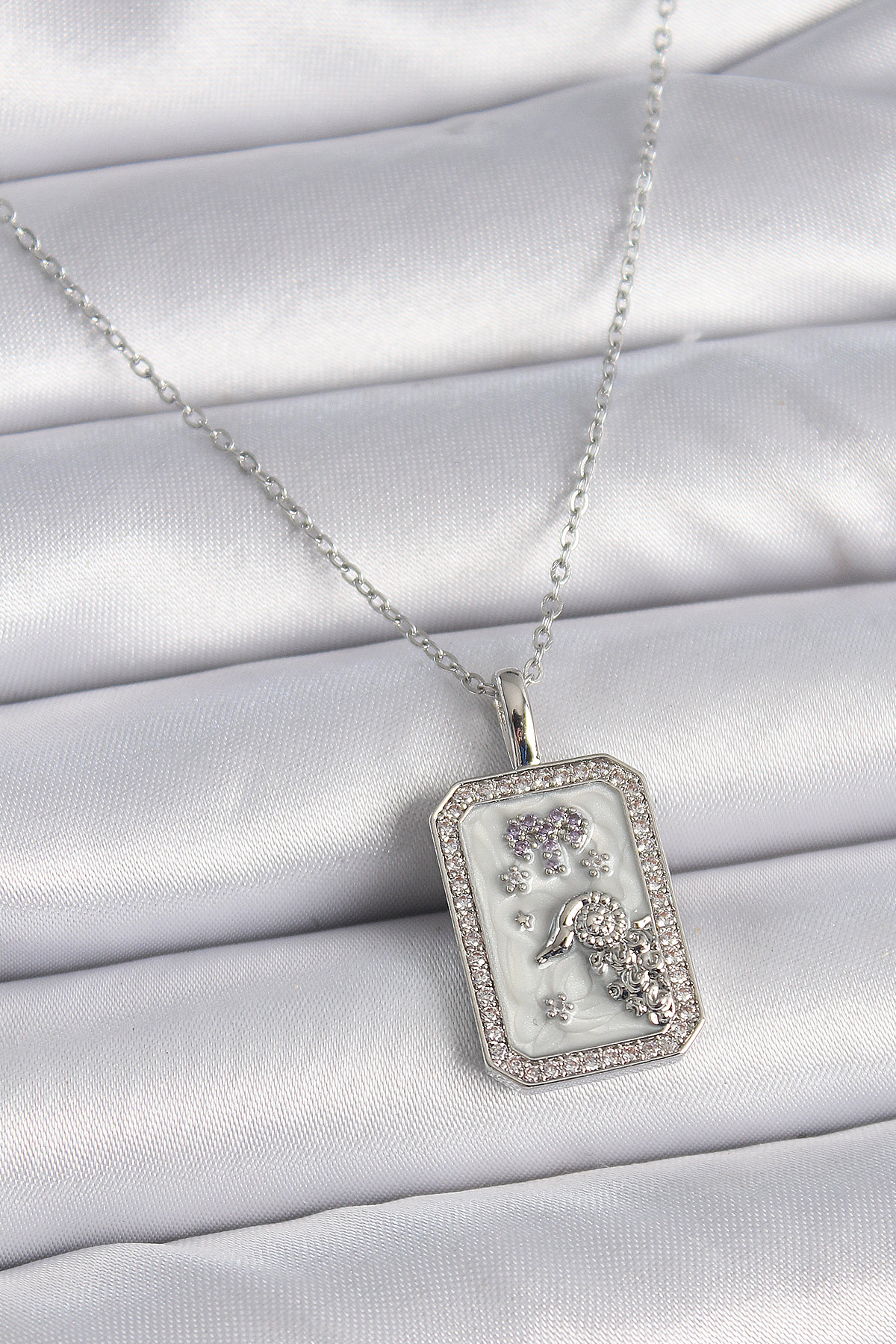 Tegan 316L Çelik Gümüş Renk Zincir Koç Burcu Zirkon Taşlı Kadın Kolye TG27BKO9452