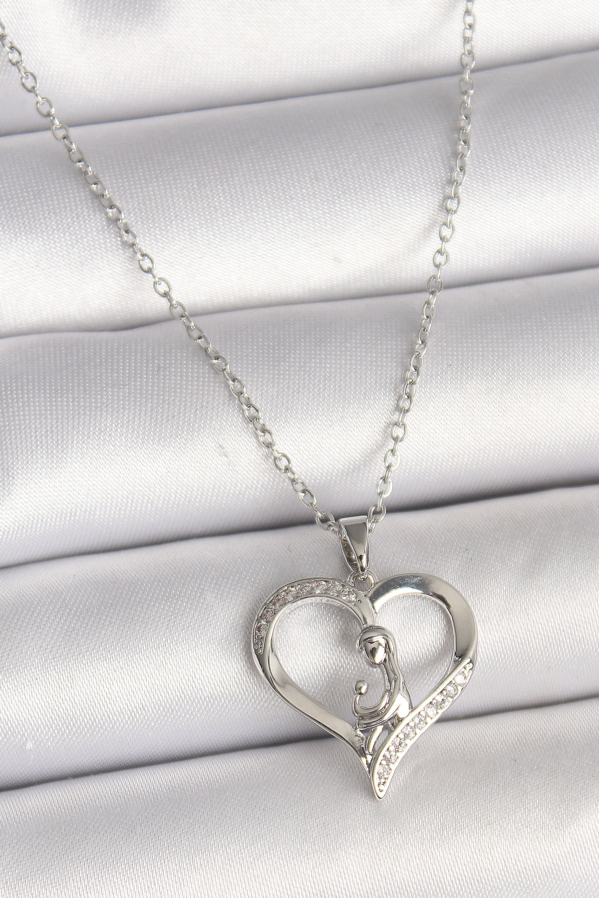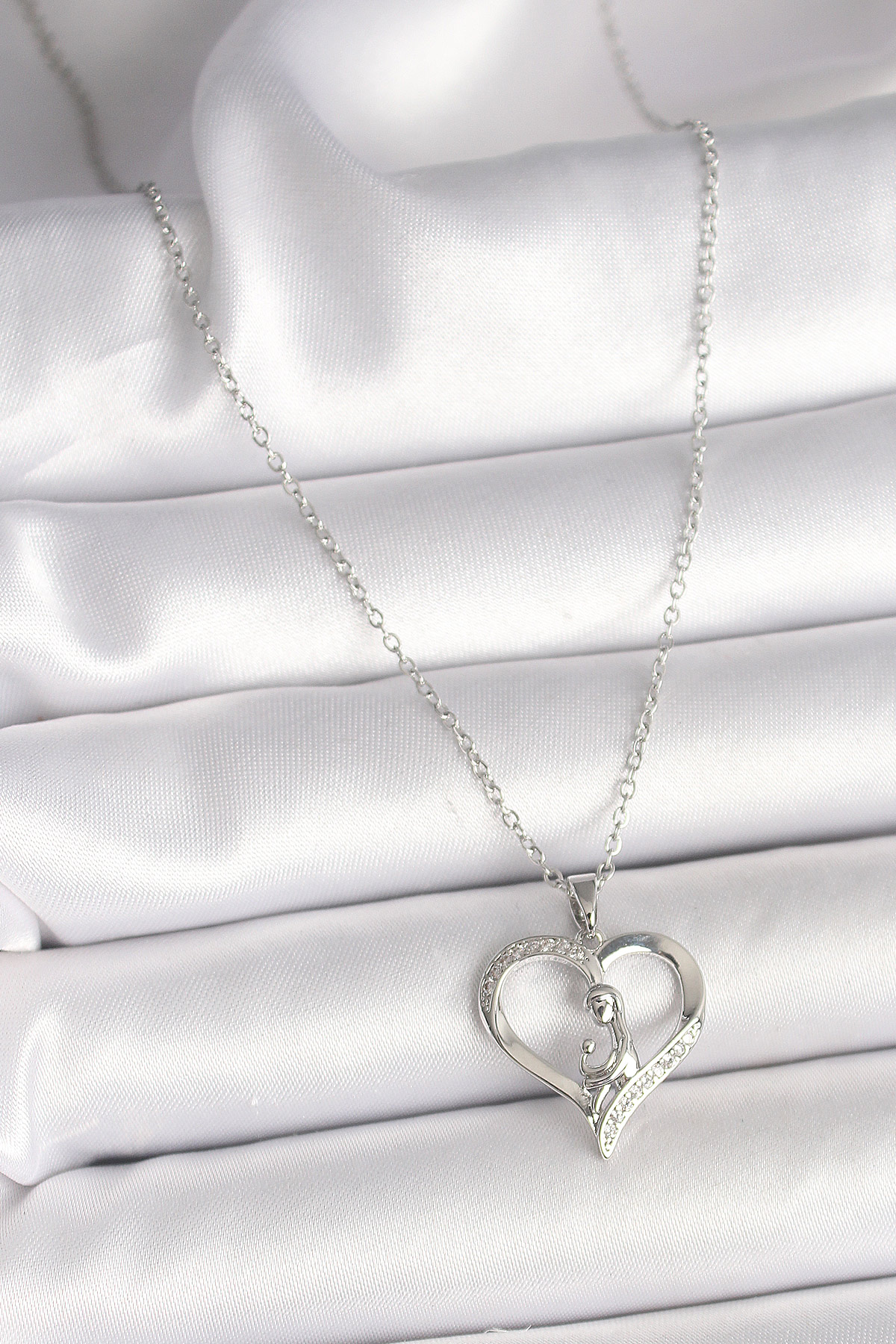 Tegan 316L Çelik Gümüş Renk Zincir Zirkon Taş Detaylı Kalp Model Kadın Kolye TG27BKO9854