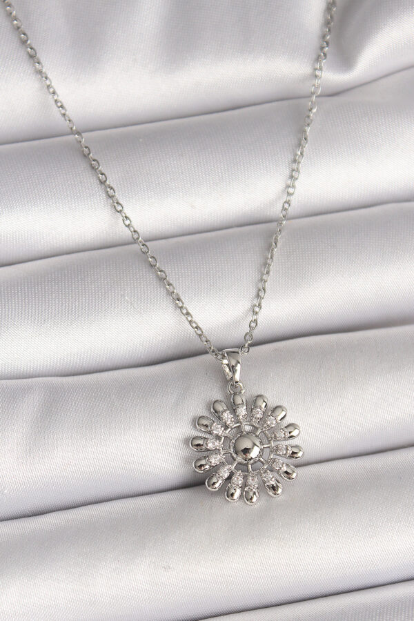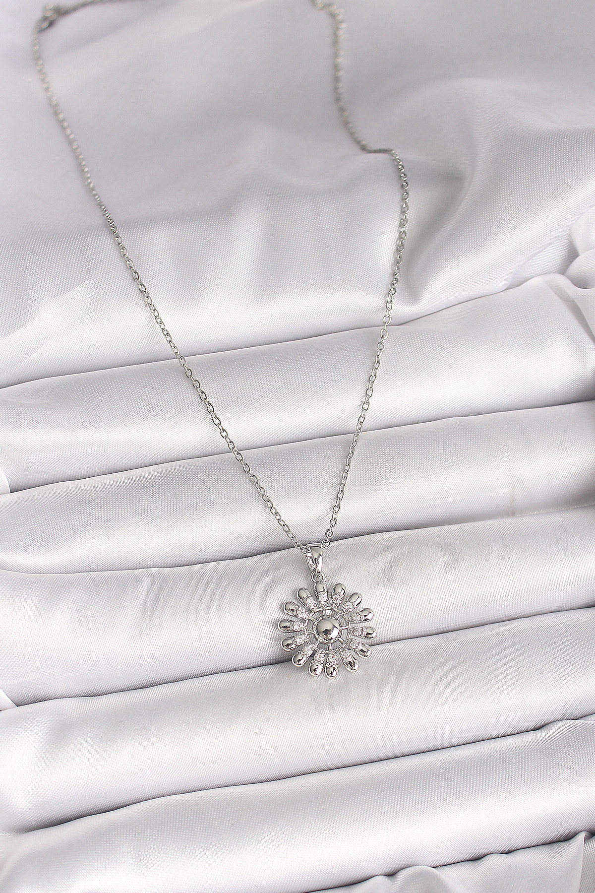Tegan 316L Çelik Gümüş Renk Zincir Zirkon Taşlı Güneş Model Kadın Kolye TG27BKO9967