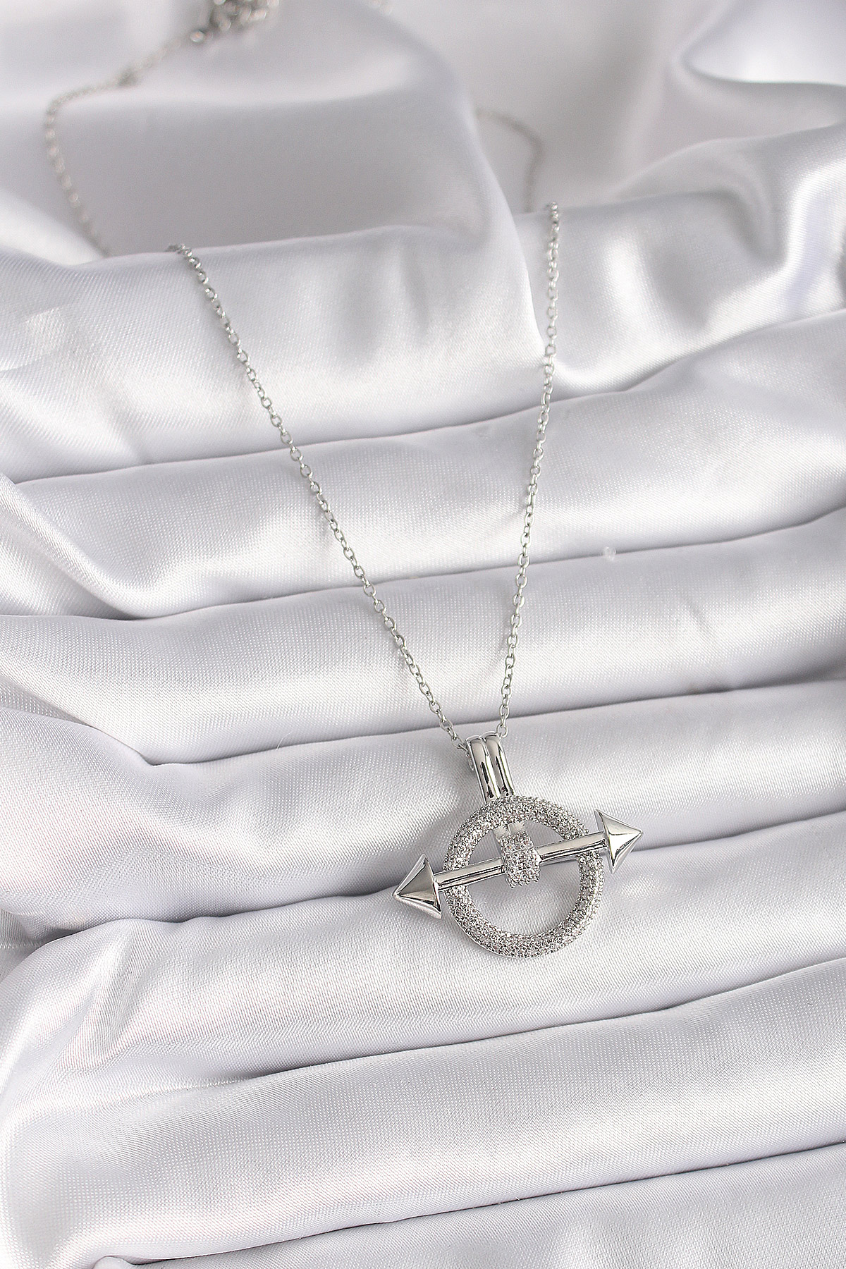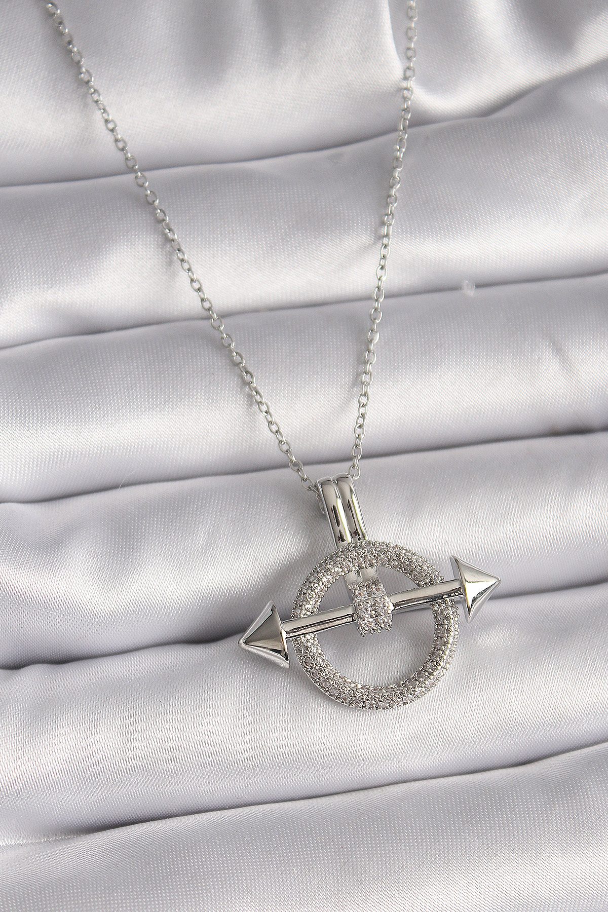 Tegan 316L Çelik Gümüş Renk Zincir Zirkon Taşlı Halka Model Kadın Kolye TG27BKO9506
