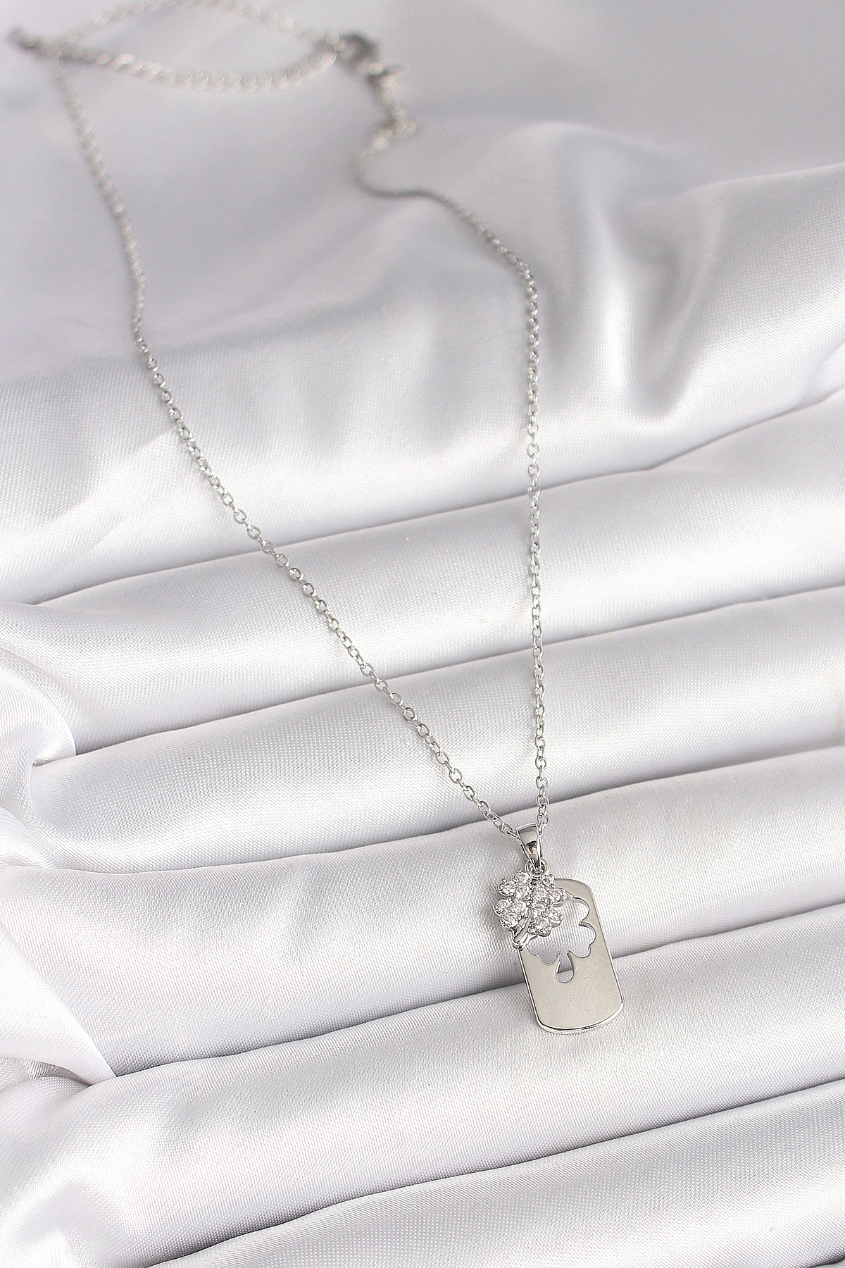 Tegan 316L Çelik Gümüş Renk Zincir Zirkon Taşlı Yonca Model Kadın Kolye TG27BKO9975