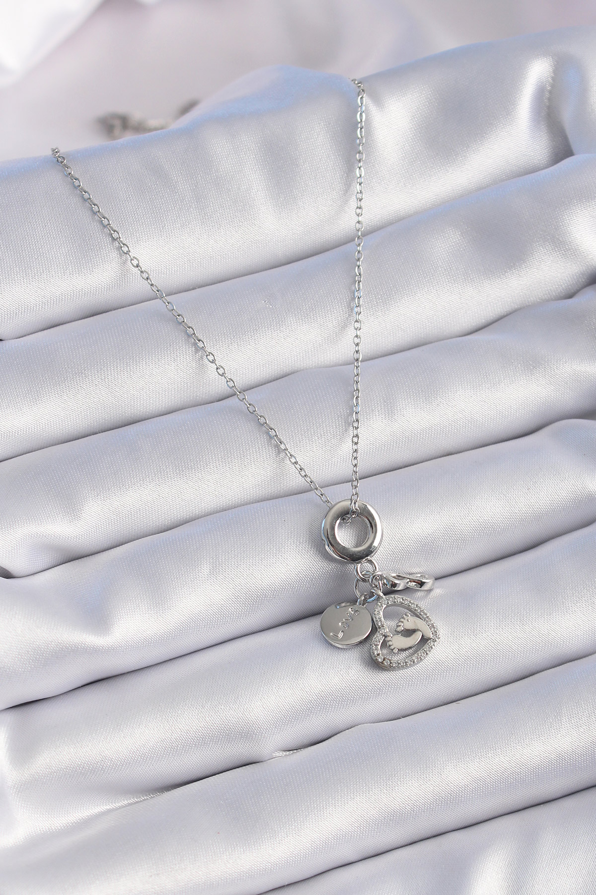 Tegan 316L Çelik Gümüş Renk Zirkon Taş Detay Kalp Model Charm Kadın Kolye TG27BKO9305