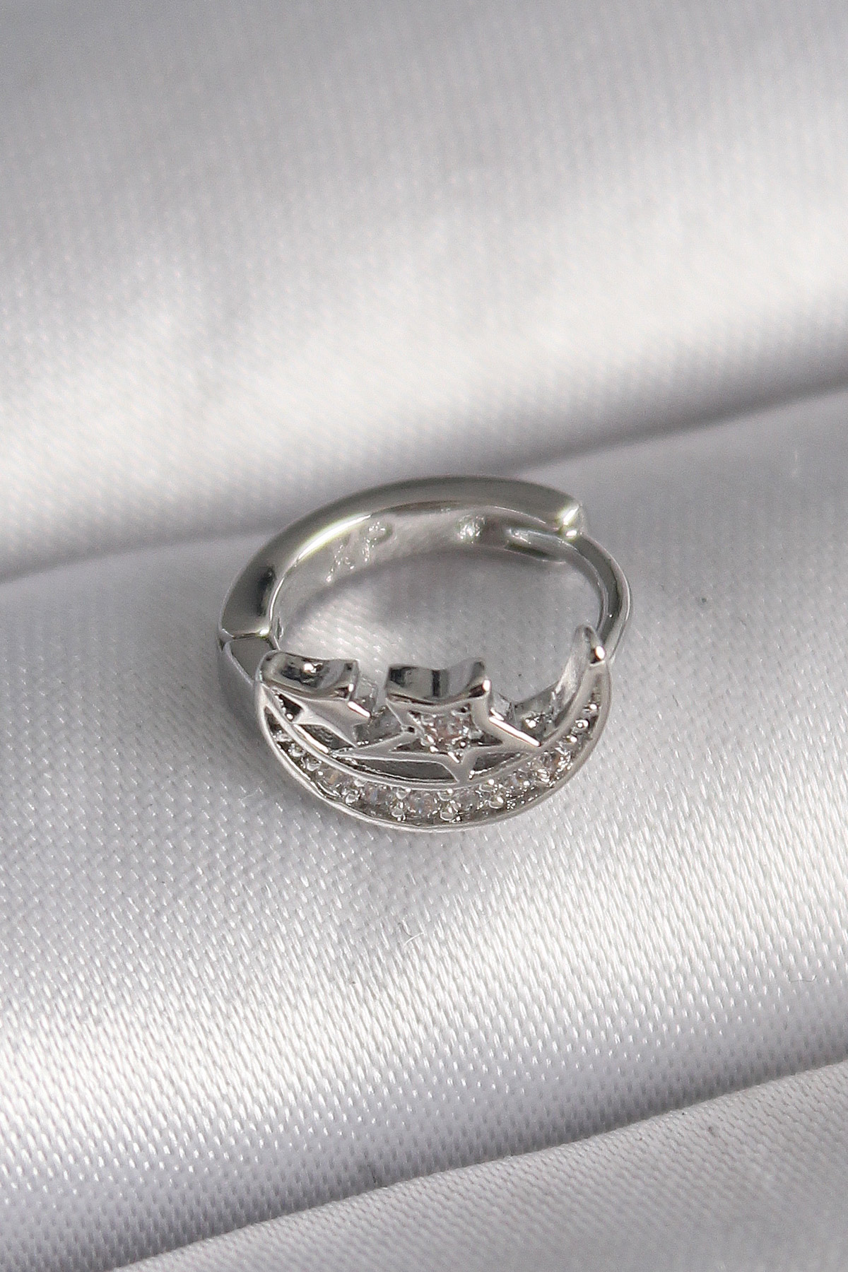 Tegan 316L Çelik Gümüş Renk Zirkon Taşlı Ay Yıldız Model Tragus Piercing TG27PR1323