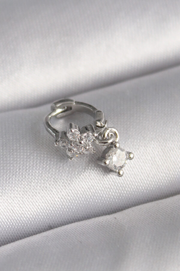 Tegan 316L Çelik Gümüş Renk Zirkon Taşlı Çiçek Model Sallantı Detay Tragus Piercing TG27PR1311
