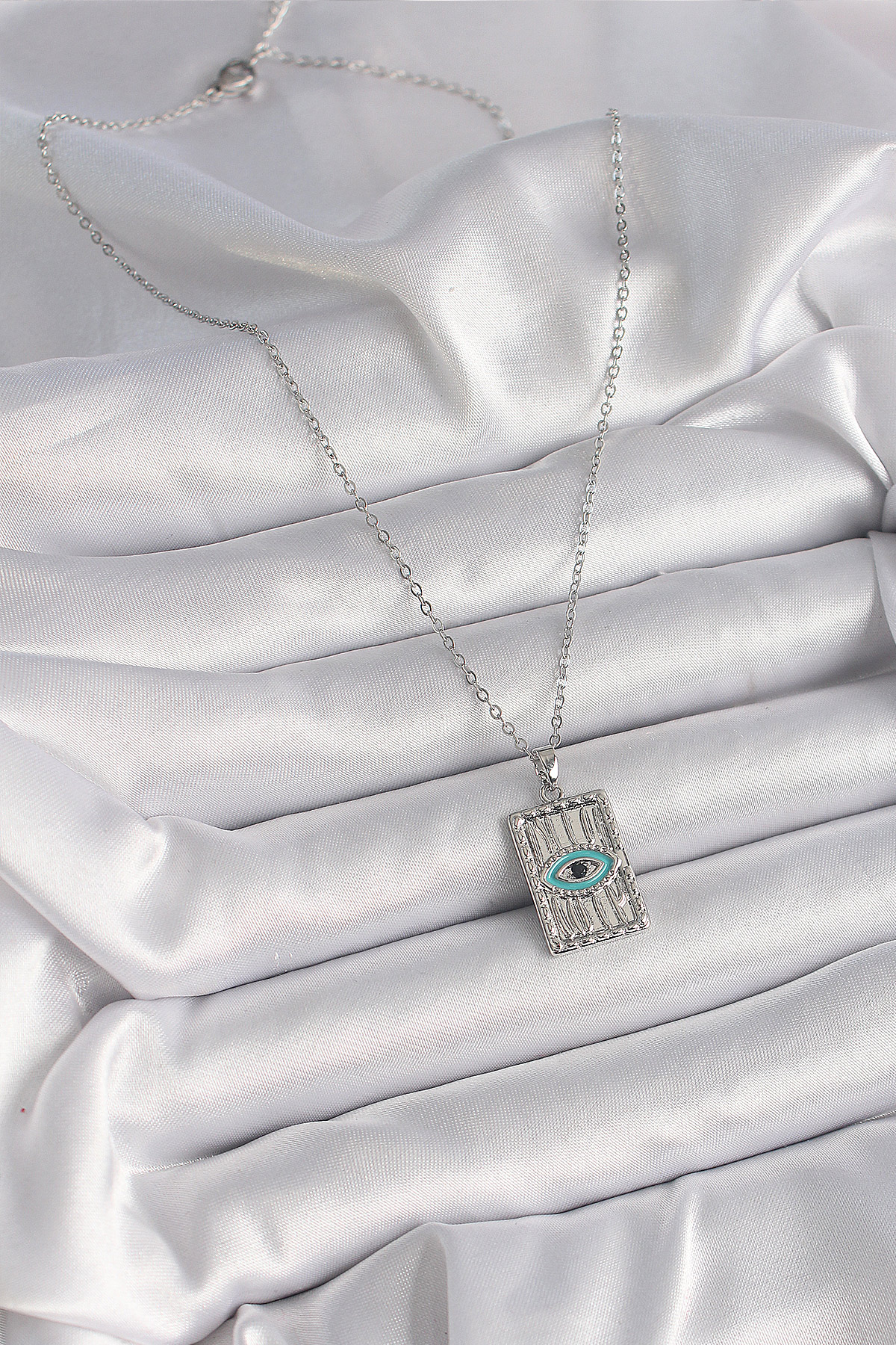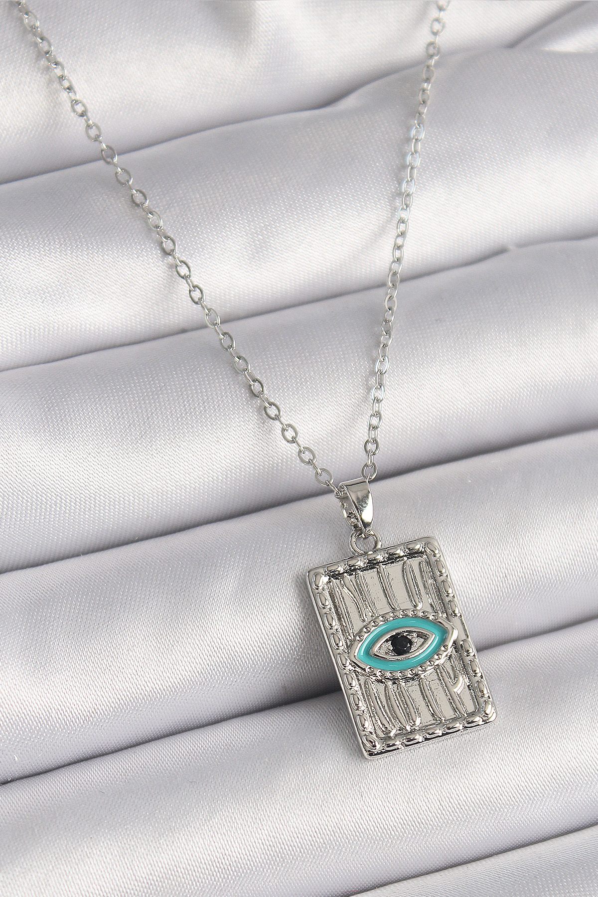 Tegan 316L Çelik Gümüş Renk Zirkon Taşlı Göz İşleme Detaylı Plaka Model Kadın Kolye TG27BKO9616