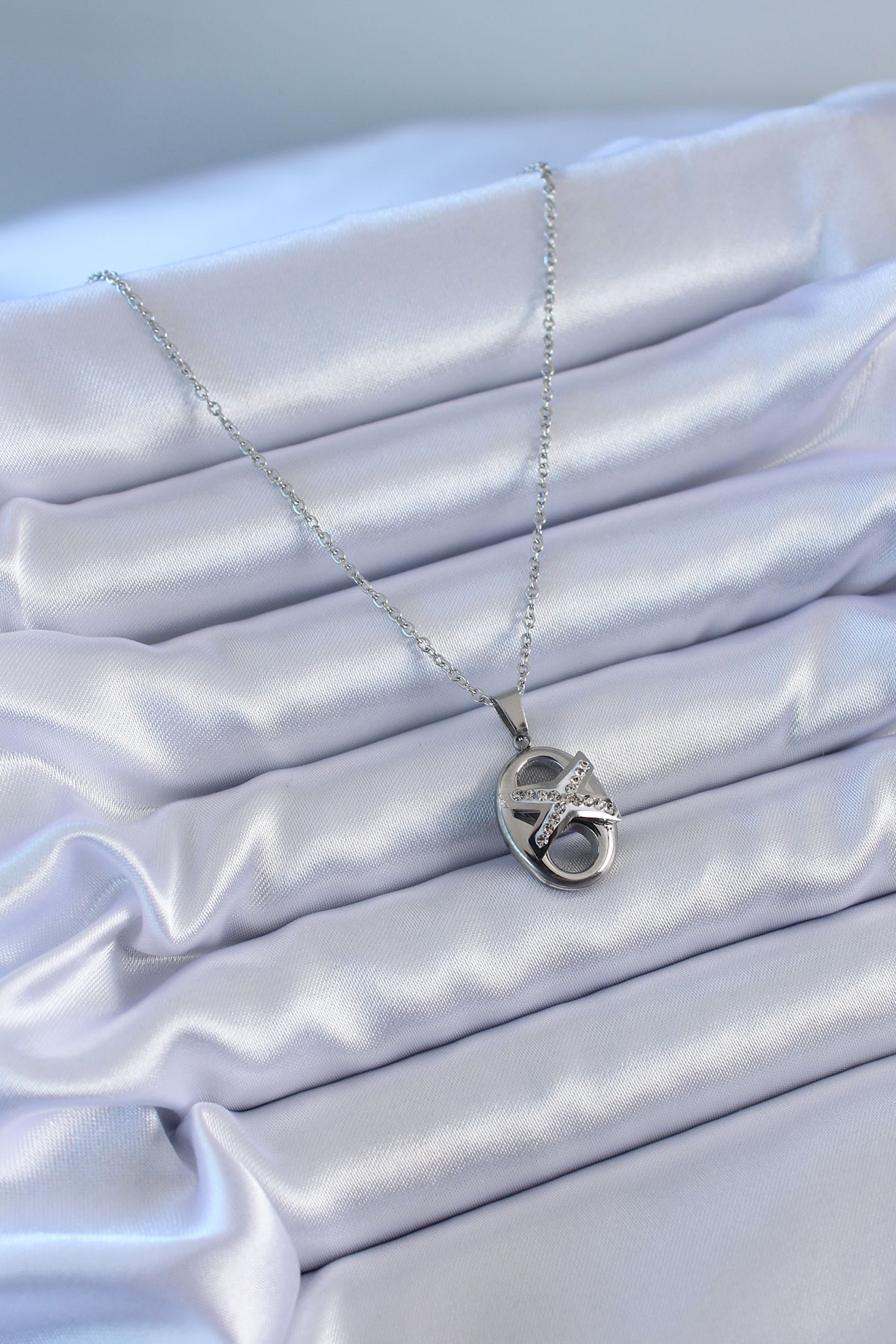 Tegan 316L Çelik Gümüş Renk Zirkon Taşlı Kadın Kolye TG27BKO7634