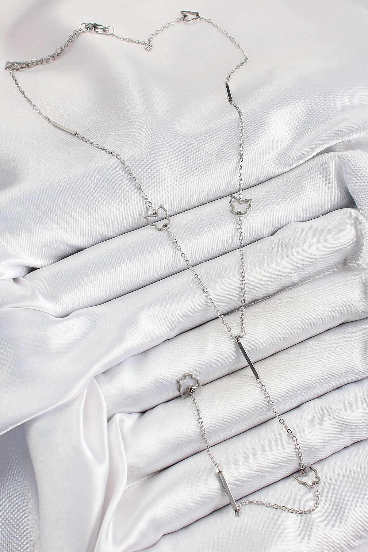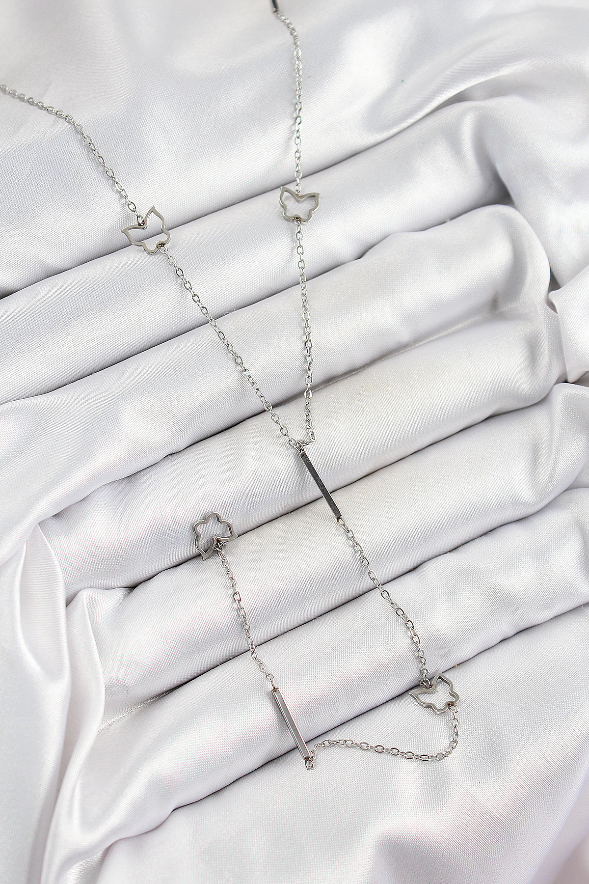 Tegan 316L Çelik Kelebek Figürlü Y Model Gümüş Renk Kadın Kolye TG27BKO10330