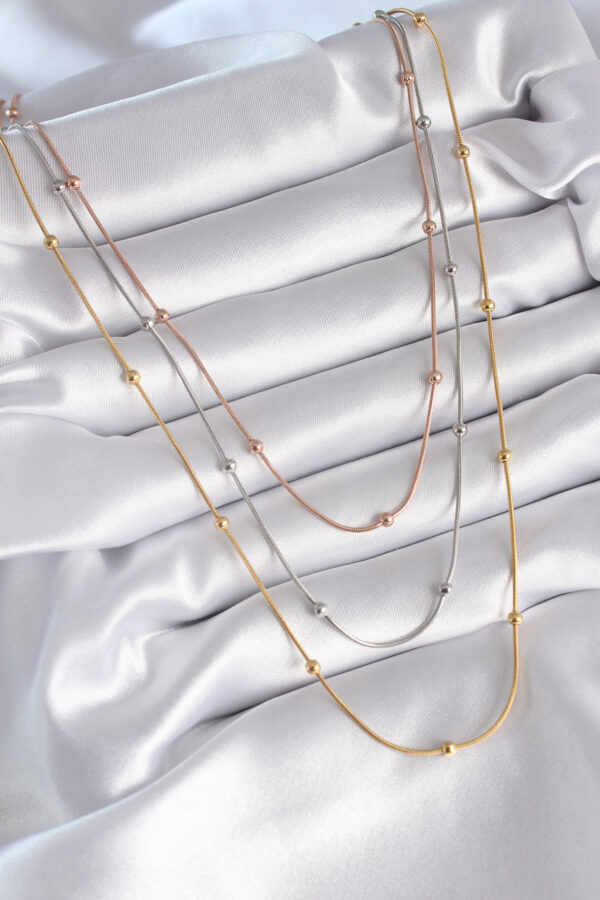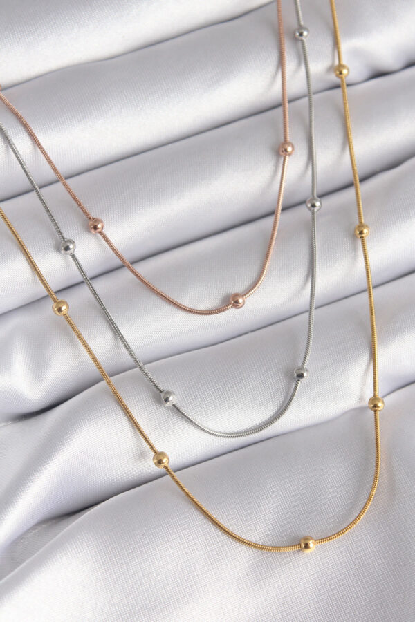Tegan 316L Çelik Mix Renk 3’lü Topçuk Detay Kadın Kolye TG27BKO8314