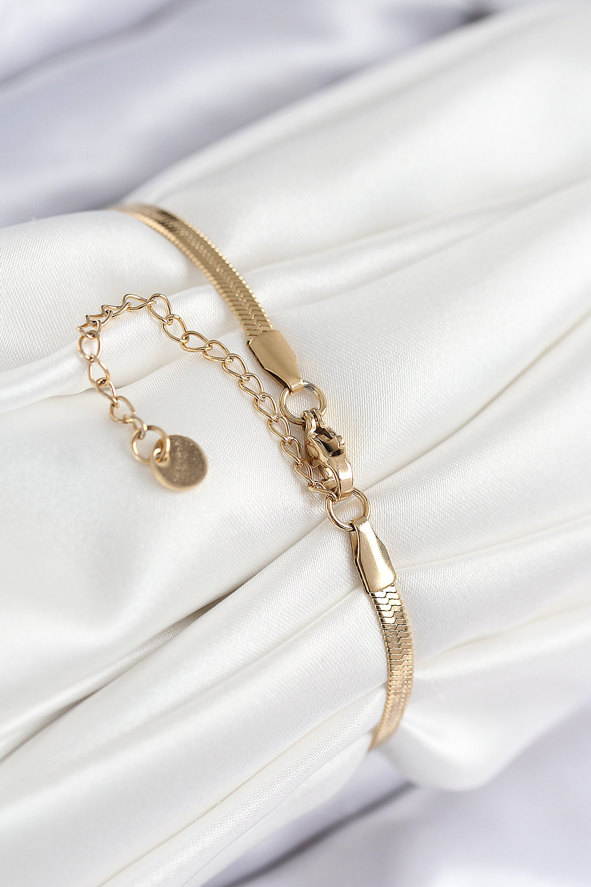 Tegan 316L Çelik Nazar Boncuk Detaylı Yonca Model İtalyan Zincir Gold Renk Kadın Bileklik TG27BB7826