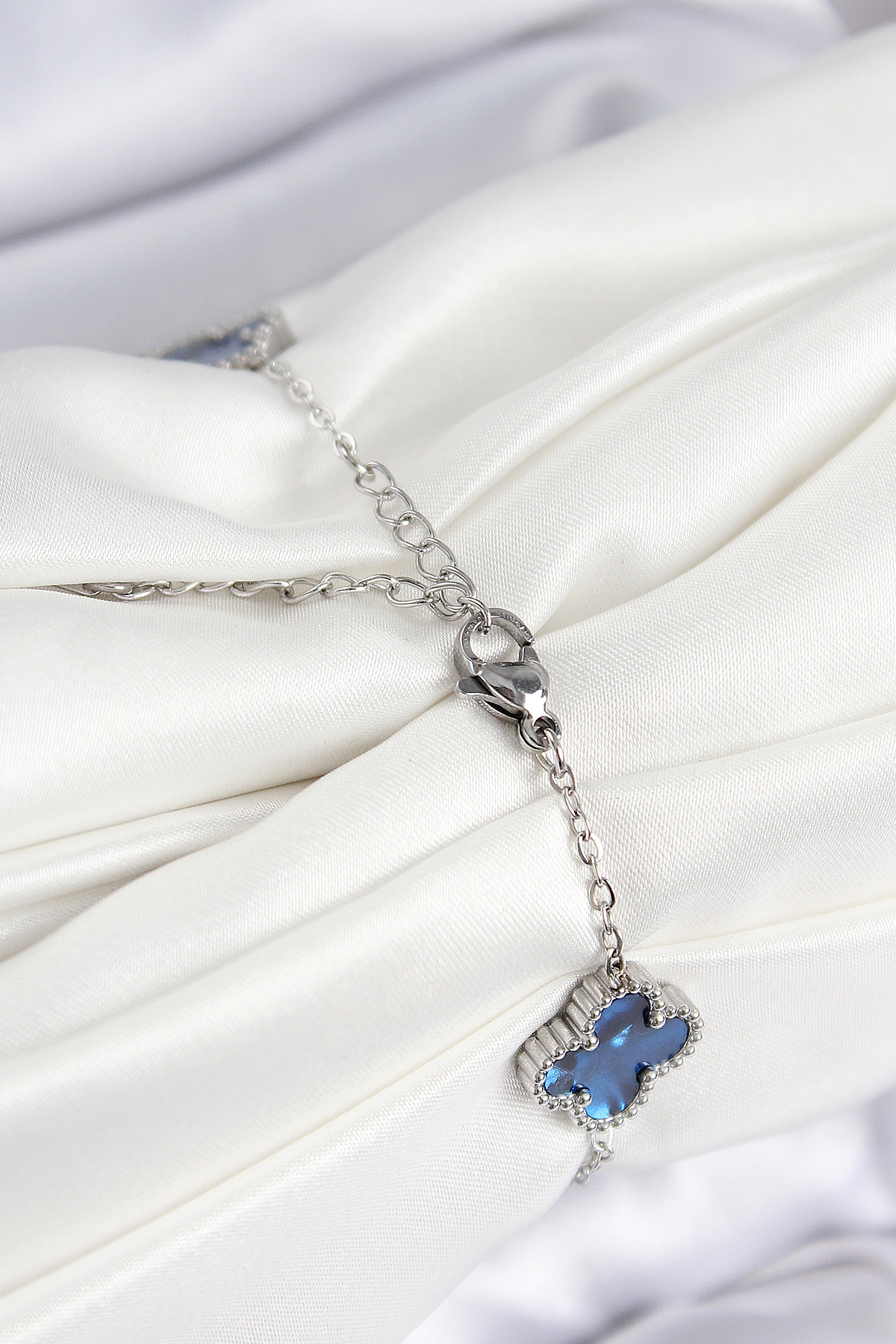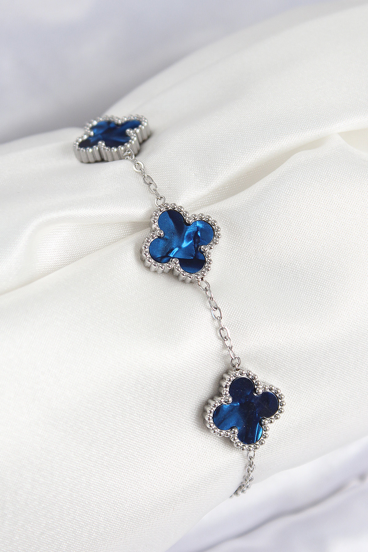 Tegan 316L Çelik Sedefli Lacivert Gümüş Renk Yonca Kadın Bileklik TG27BB7671