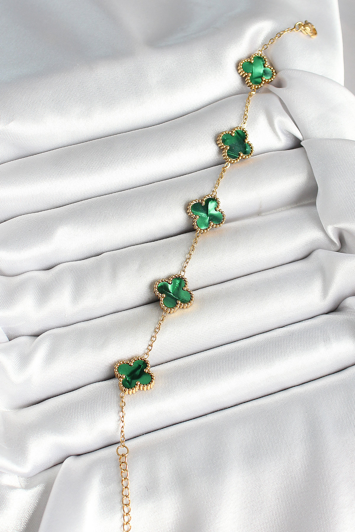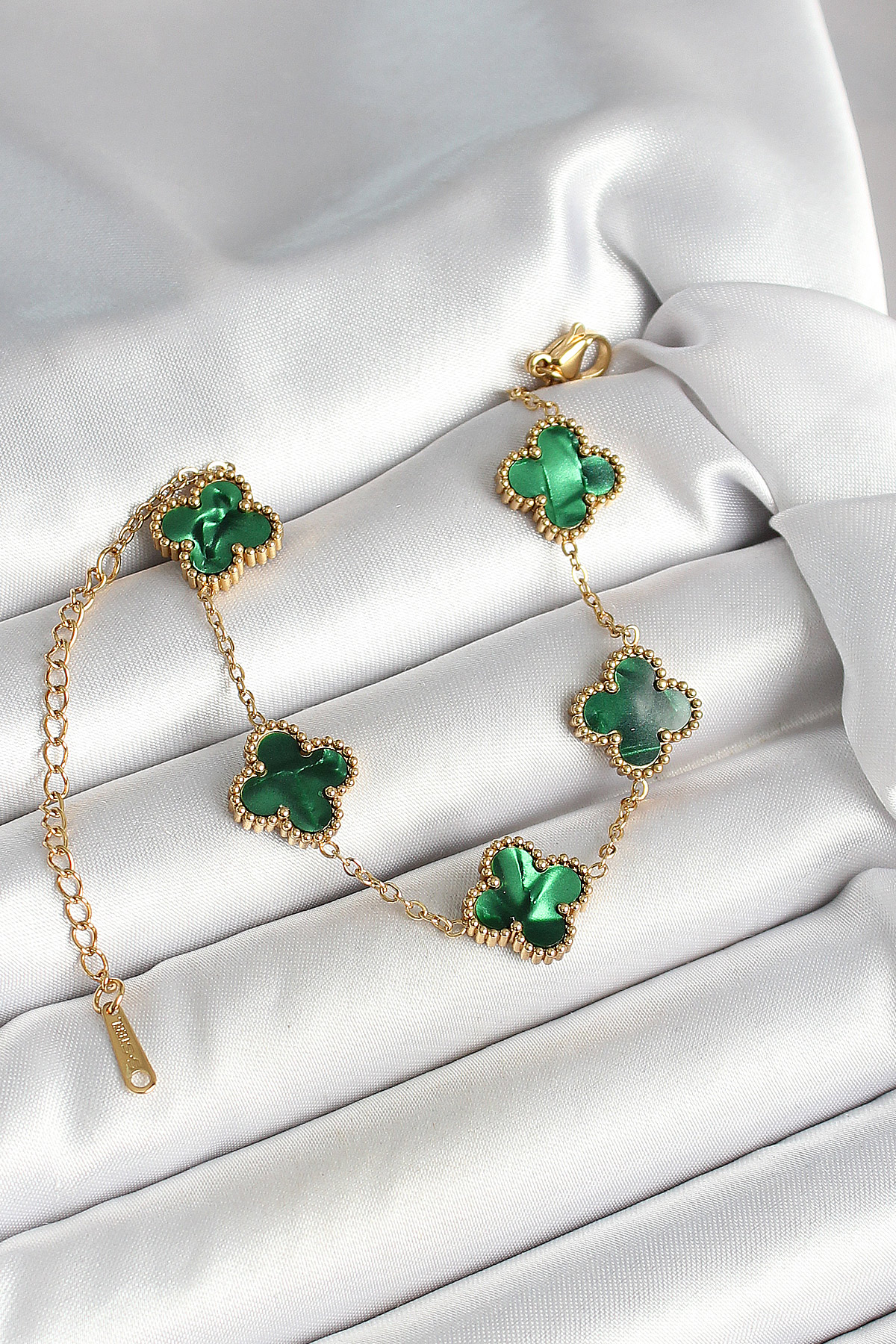 Tegan 316L Çelik Sedefli Zümrüt Yeşil Gold Renk Yonca Kadın Bileklik TG27BB6968