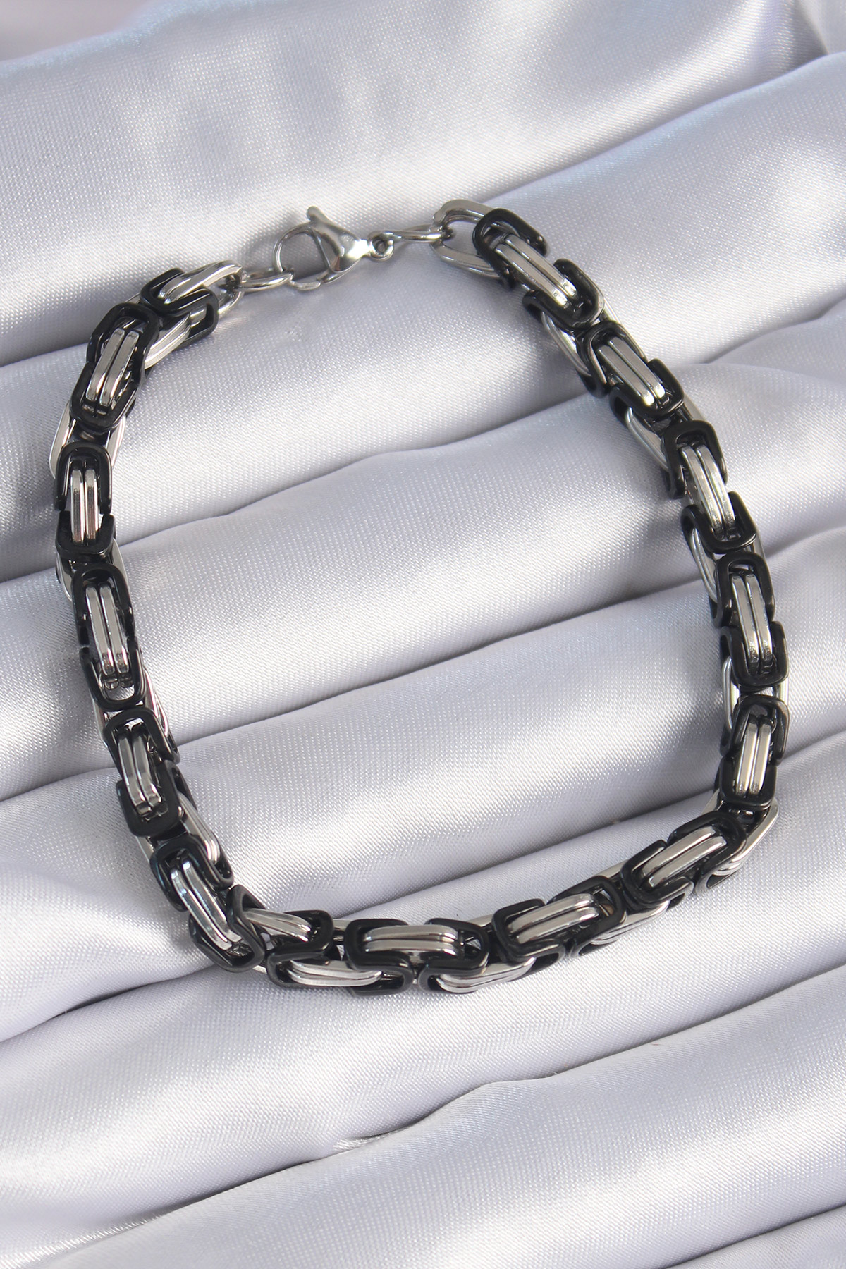 Tegan 316L Çelik Siyah Gümüş Renk Kral Zincir Model Erkek Bileklik TG27EB3694