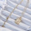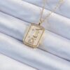 Tegan 316L Çelik Zincir Altın Renk Zirkon Taşlı Çerçeveli Tarot Kolye TG27BKO9243