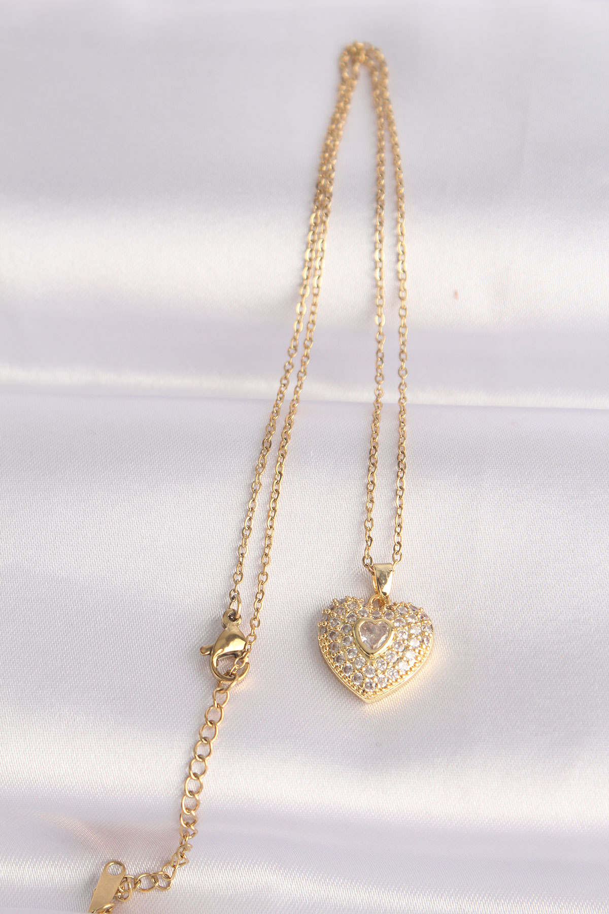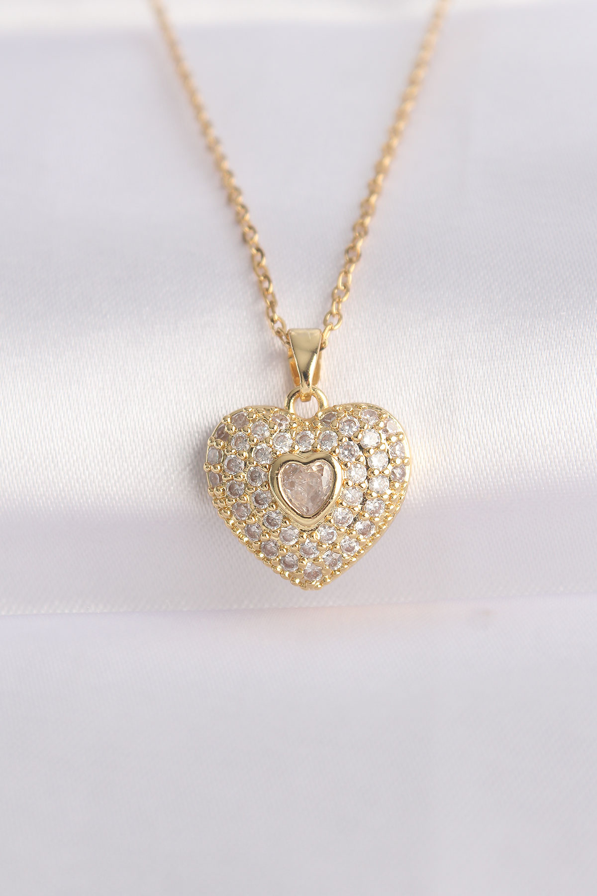 Tegan 316L Çelik Zincir Altın Renk Zirkon Taşlı Kalp Kolye TG27BKO8624