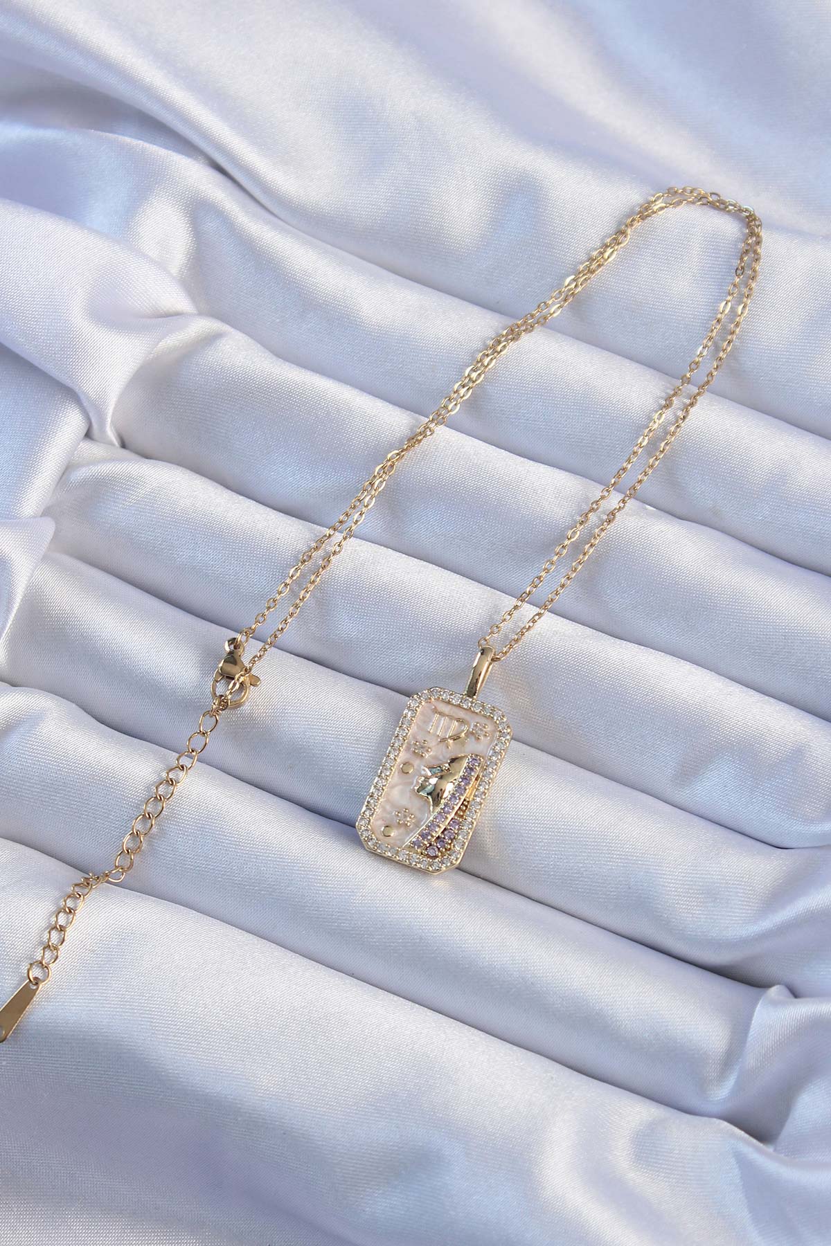 Tegan 316L Çelik Zincir Altın Renk Zirkon Taşlı Yüz Figürlü Tarot Kolye TG27BKO9241