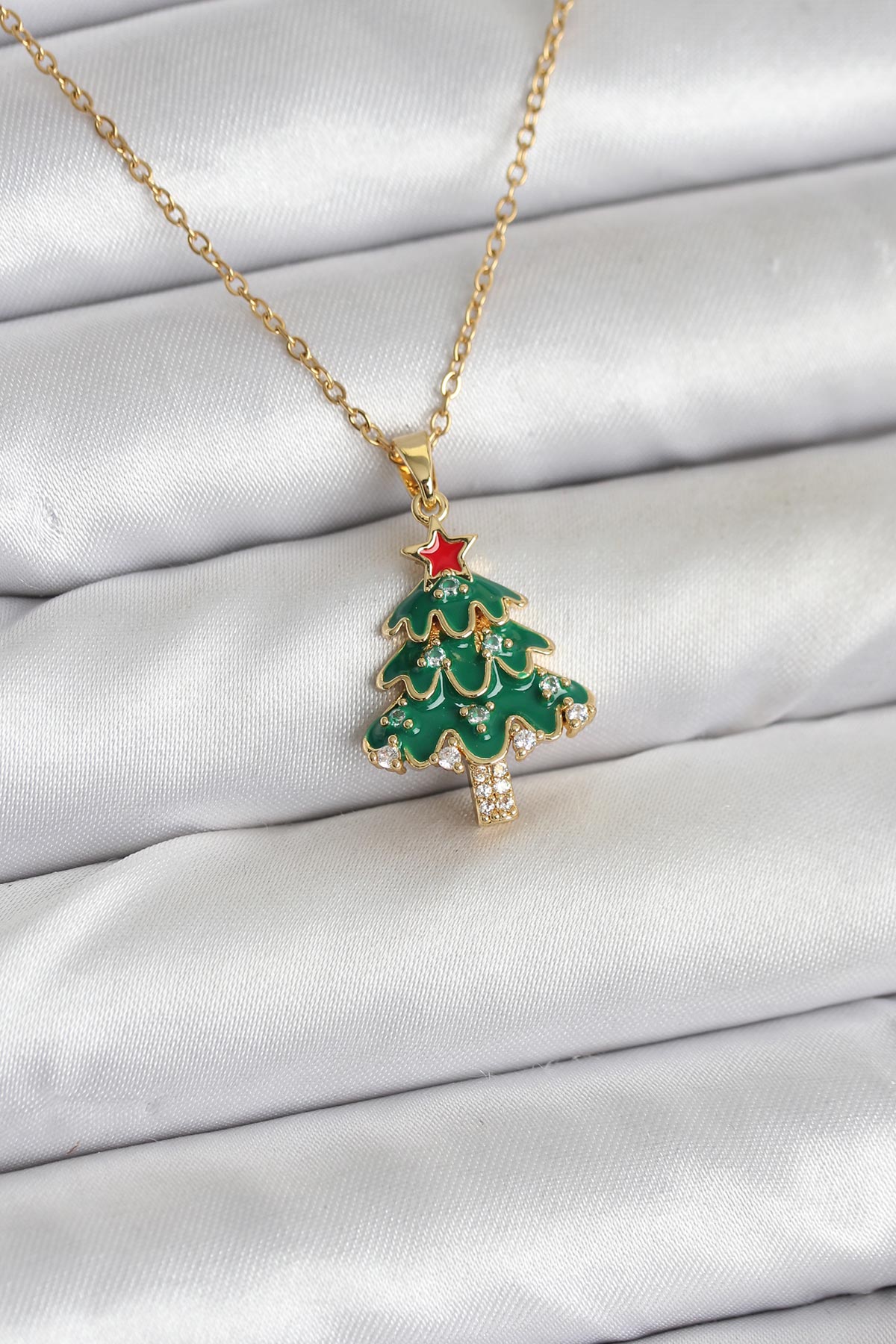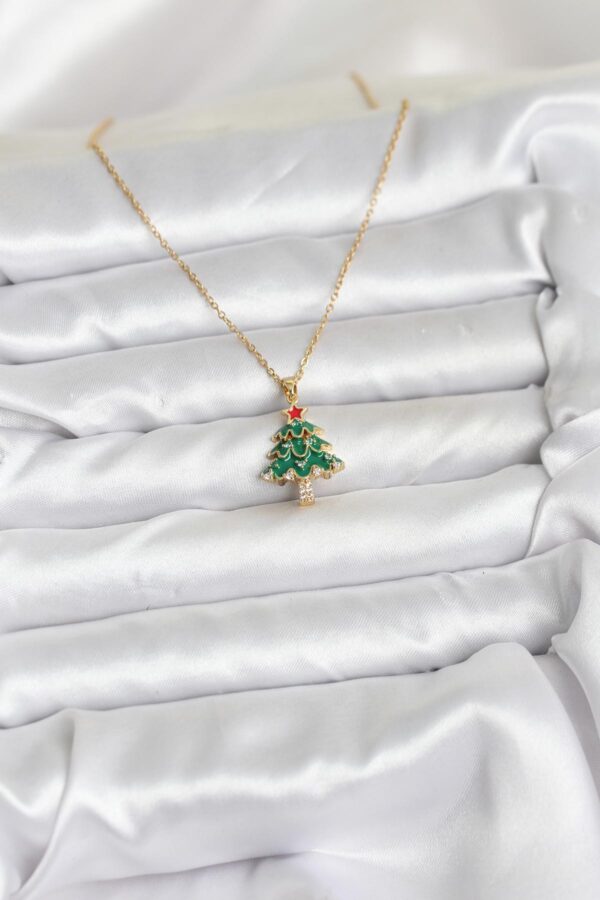 Tegan 316L Çelik Zincir Gold Renk Çam Ağacı Model Yılbaşı Temalı Kadın Kolye TG27BKO10720