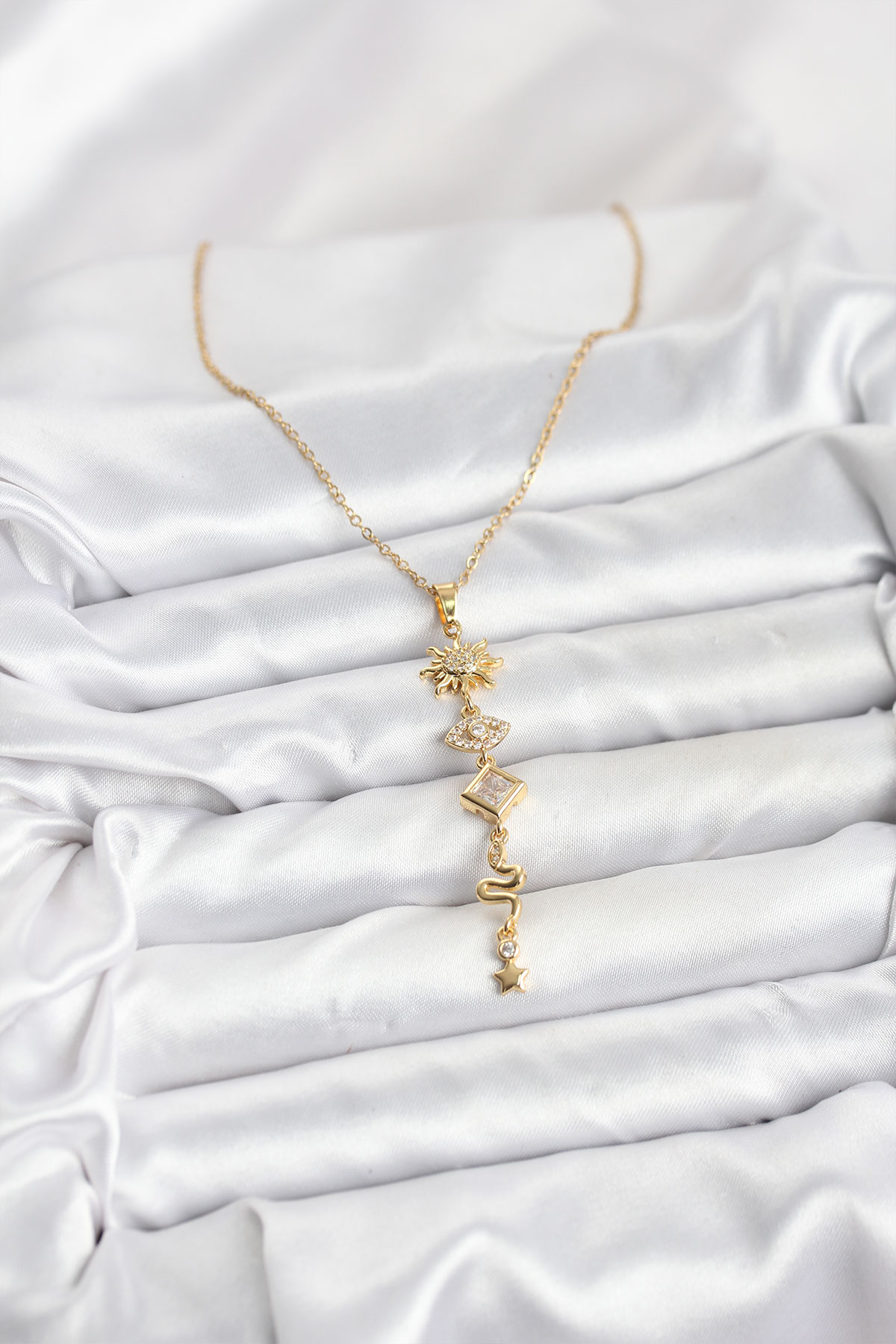 Tegan 316L Çelik Zincir Gold Renk Güneş ve Enerji Model Kadın Y Kolye TG27BKO10668