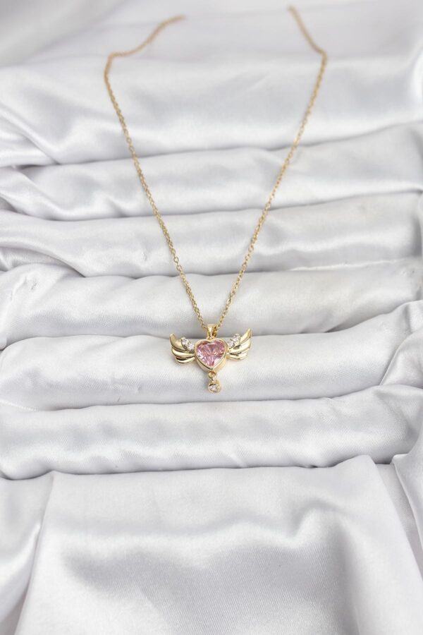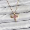 Tegan 316L Çelik Zincir Gold Renk Kanatlı Kalp Model Zirkon Taşlı Kadın Kolye TG27BKO10837