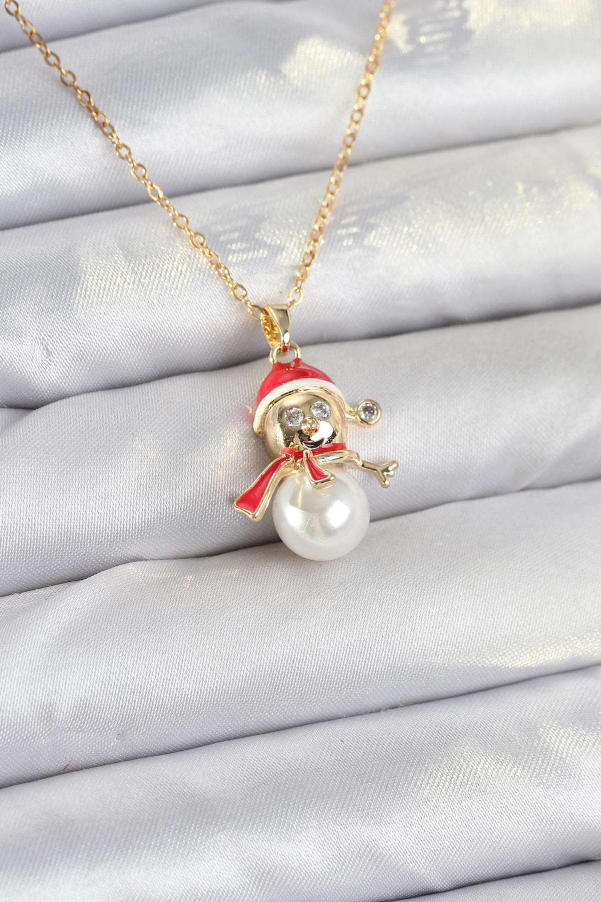 Tegan 316L Çelik Zincir Gold Renk Kardan Adam Model Yılbaşı Temalı Kadın Kolye TG27BKO10702