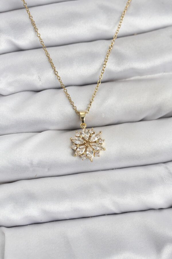 Tegan 316L Çelik Zincir Gold Renk Lotus Model Zirkon Taşlı Kadın Kolye TG27BKO10835