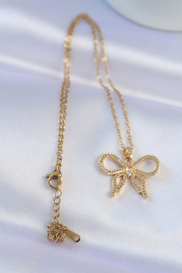 Tegan 316L Çelik Zincir Gold Renk Zirkon Taşlı Fiyonk Kolye TG27BKO8742