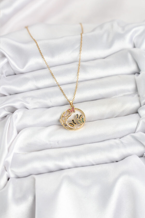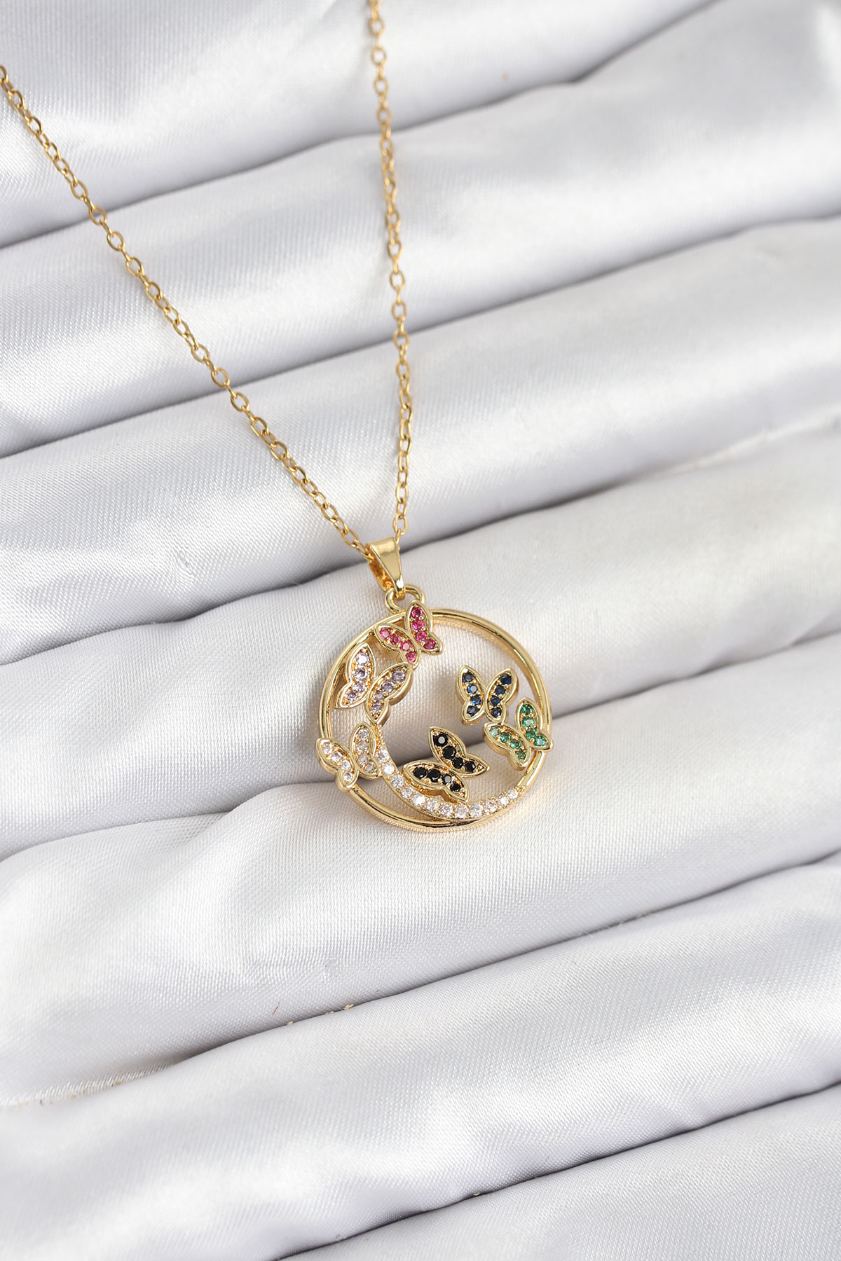 Tegan 316L Çelik Zincir Gold Renk Zirkon Taşlı Kelebekli Kadın Kolye TG27BKO10609