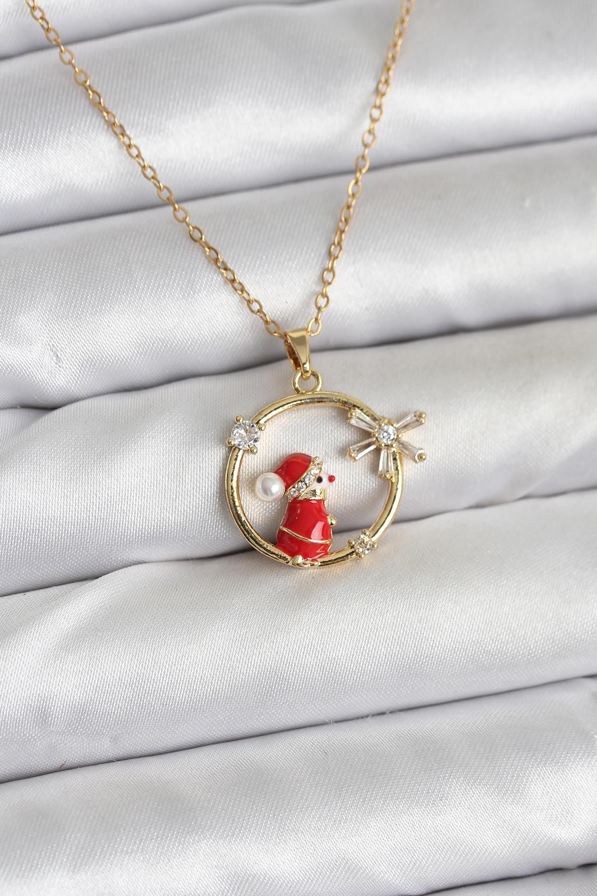 Tegan 316L Çelik Zincir Gold Zirkon Taşlı Yılbaşı Tema Kadın Kolye TG27BKO10718
