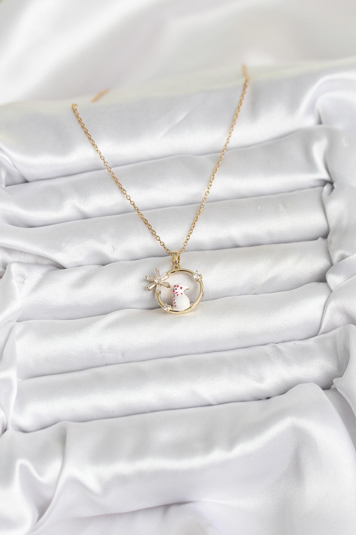 Tegan 316L Çelik Zincir Gold Zirkon Taşlı Yılbaşı Temalı Kadın Kolye TG27BKO10704