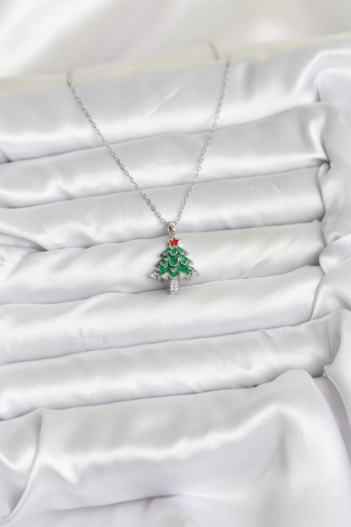 Tegan 316L Çelik Zincir Gümüş Renk Çam Ağacı Model Yılbaşı Temalı Kadın Kolye TG27BKO10721