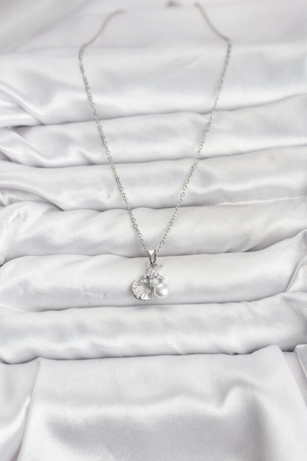 Tegan 316L Çelik Zincir Gümüş Renk Deniz Kabuğu ve Deniz Yıldızı Model Zirkon Taşlı Kadın Kolye TG27BKO10840