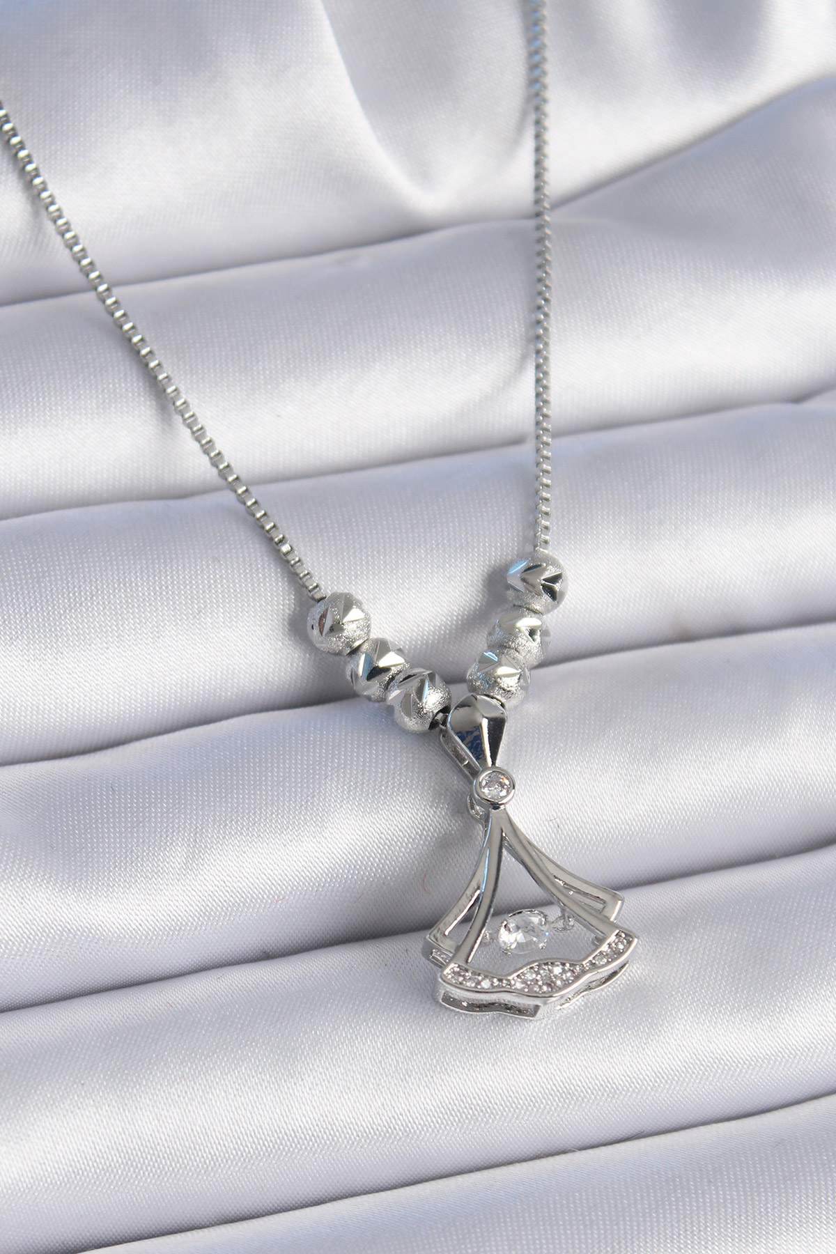 Tegan 316L Çelik Zincir Gümüş Renk Gingko Yaprağı Model Zirkon Taş Detay Kadın Kolye TG27BKO9351
