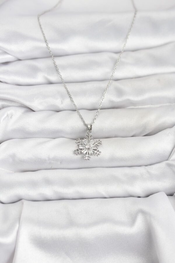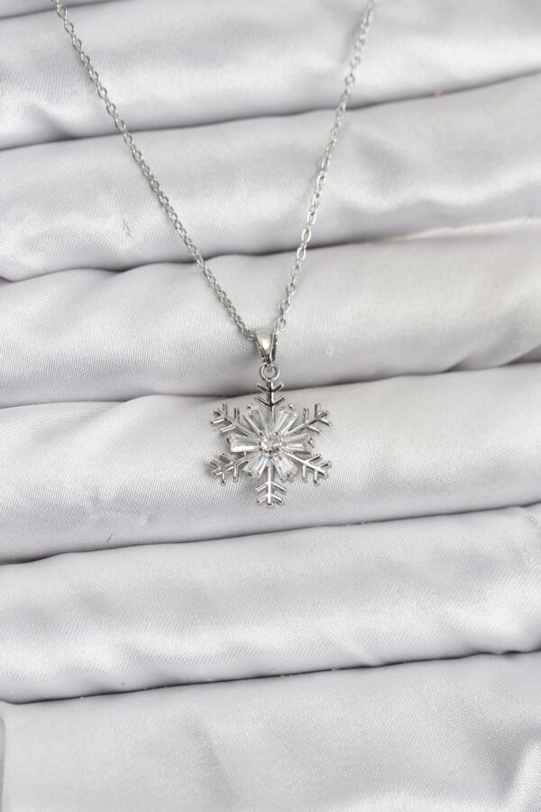 Tegan 316L Çelik Zincir Gümüş Renk Kar Tanesi Model Zirkon Taşlı Kadın Kolye TG27BKO10830