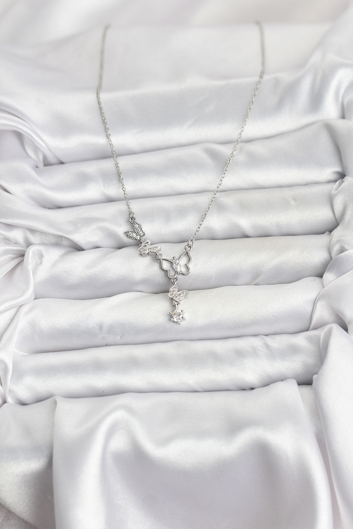 Tegan 316L Çelik Zincir Gümüş Renk Kelebek Model Kadın Kolye TG27BKO10677