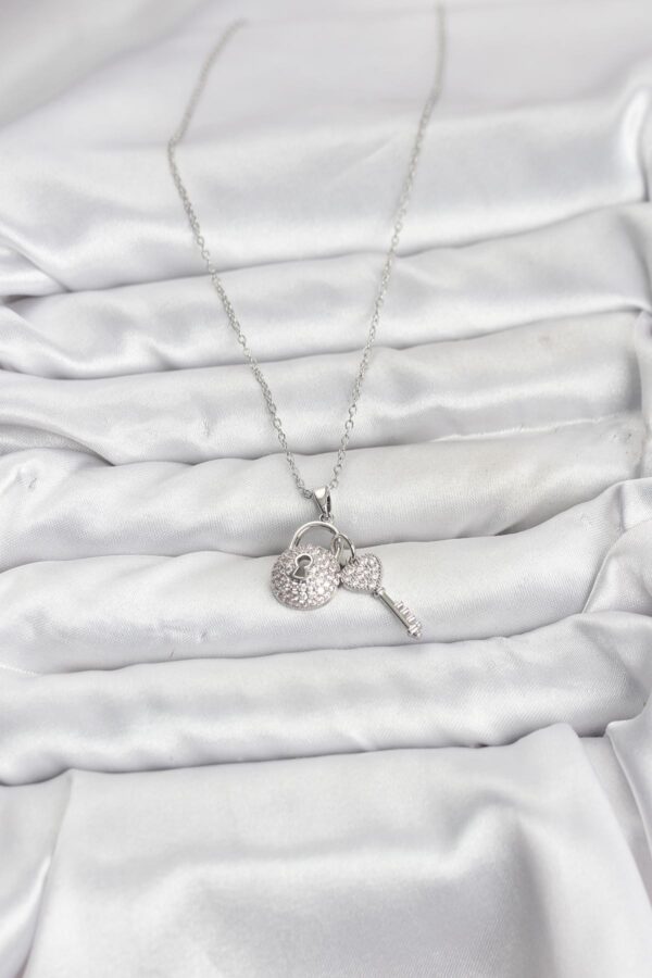 Tegan 316L Çelik Zincir Gümüş Renk Kilit Anahtar Model Zirkon Taşlı Kadın Kolye TG27BKO10880