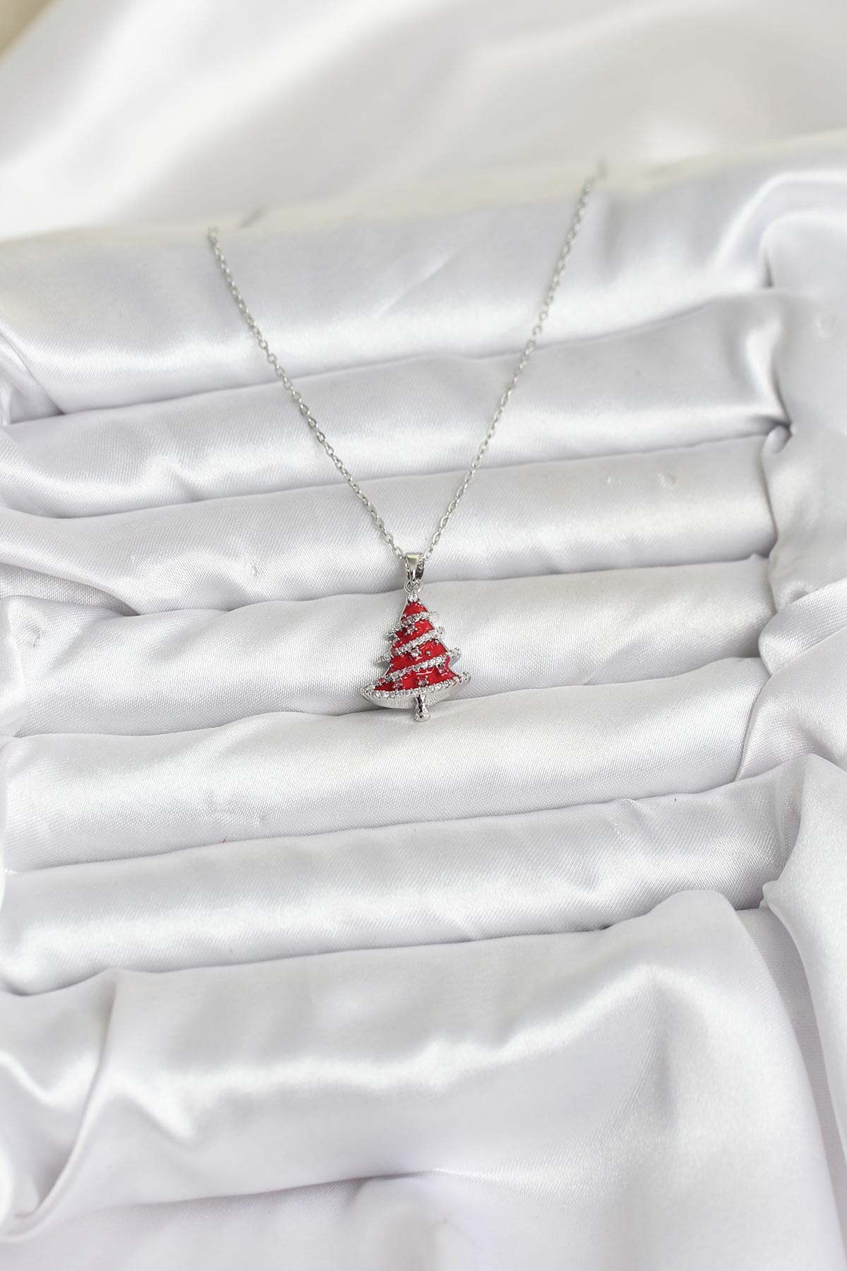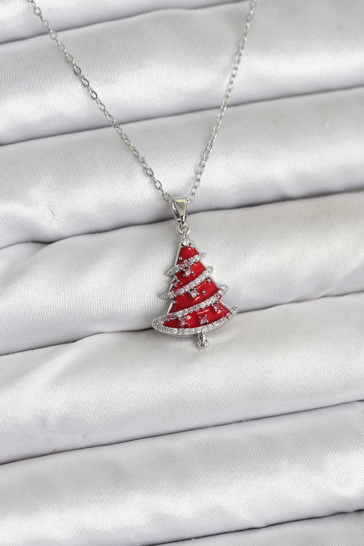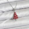 Tegan 316L Çelik Zincir Gümüş Renk Kırmızı Çam Ağacı Model Yılbaşı Temalı Kadın Kolye TG27BKO10715
