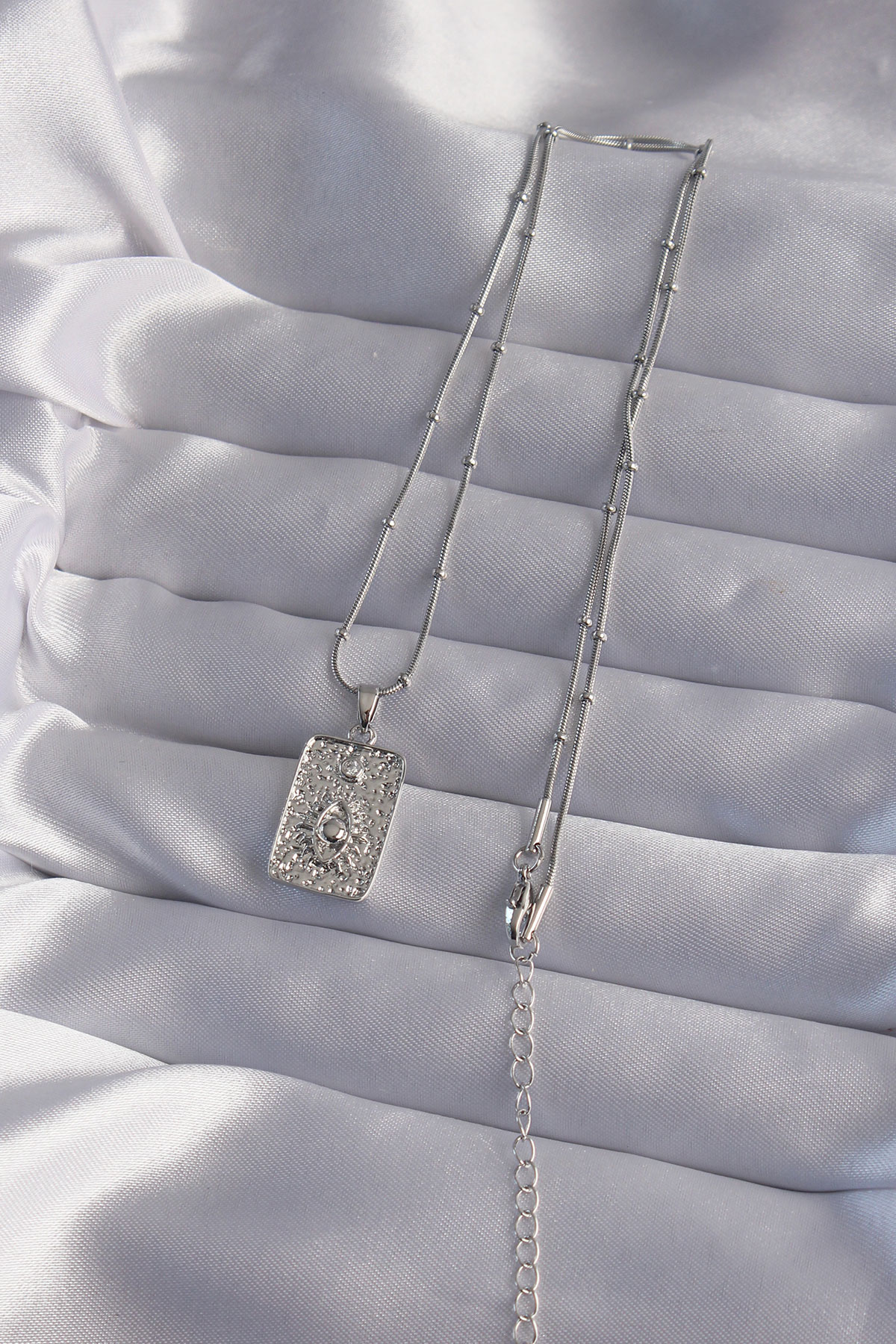 Tegan 316L Çelik Zincir Gümüş Renk Lazer İşlemeli Göz Figür Tarot Kolye TG27BKO9018