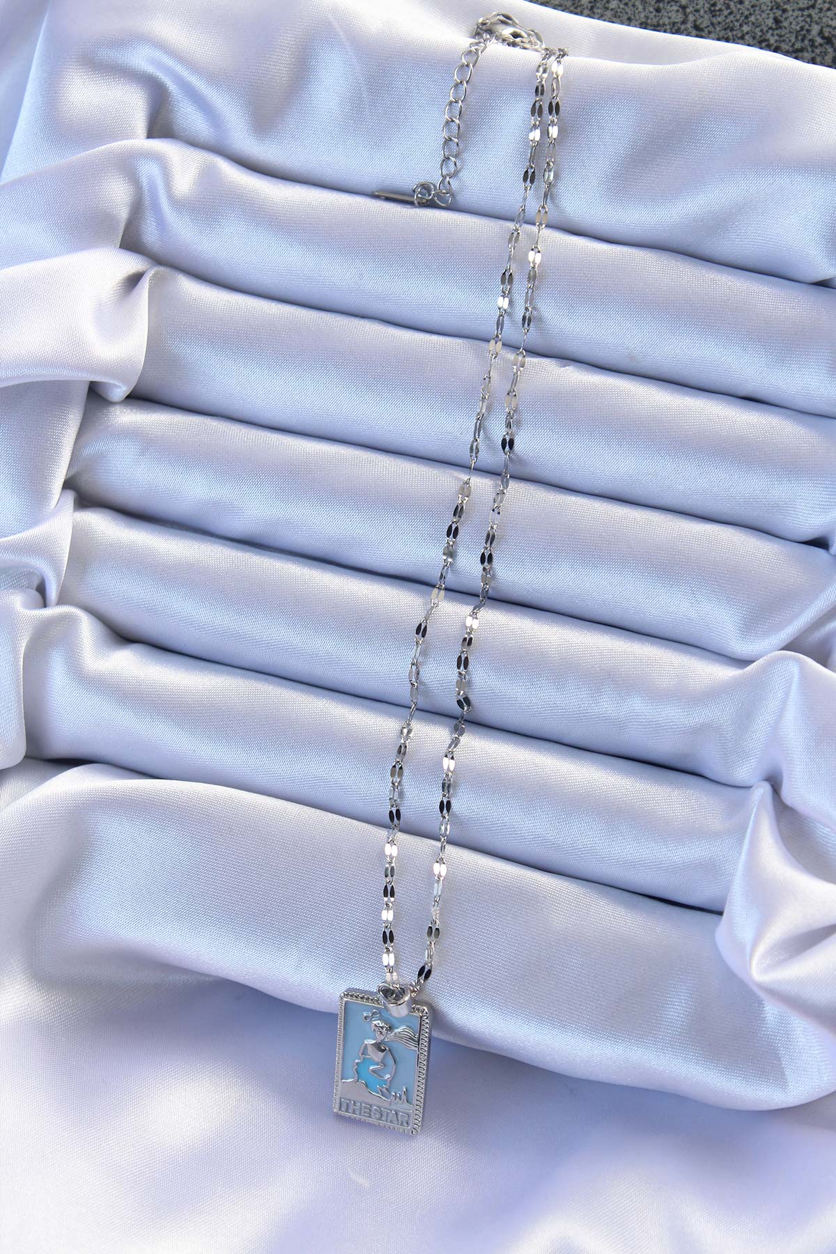 Tegan 316L Çelik Zincir Gümüş Renk Mavi Mineli Tarot Kolye TG27BKO9210
