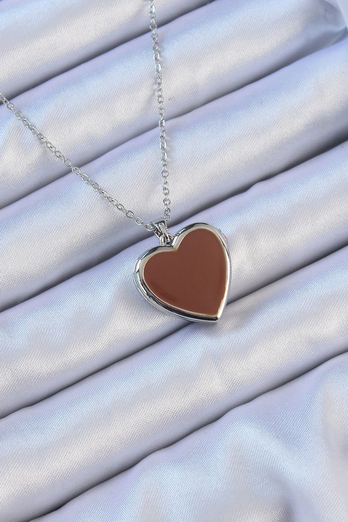 Tegan 316L Çelik Zincir Gümüş Renk Mineli İçi Açılan Kalp Kolye TG27BKO9098