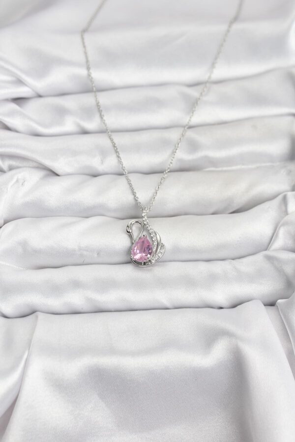 Tegan 316L Çelik Zincir Gümüş Renk Pembe Kuğu Model Zirkon Taşlı Kadın Kolye TG27BKO10866