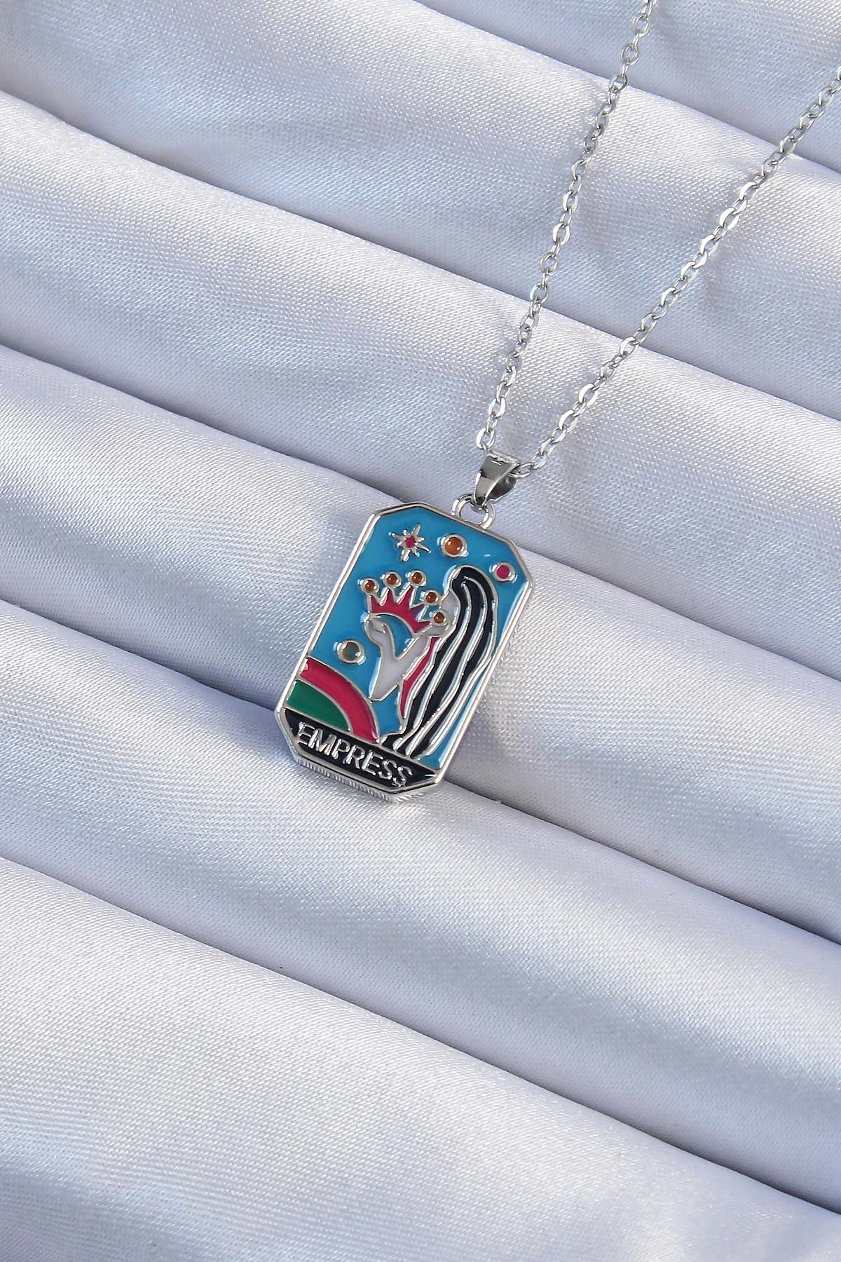 Tegan 316L Çelik Zincir Gümüş Renk Taç ve Kız Figürlü Renkli Mineli Tarot Kolye TG27BKO9230
