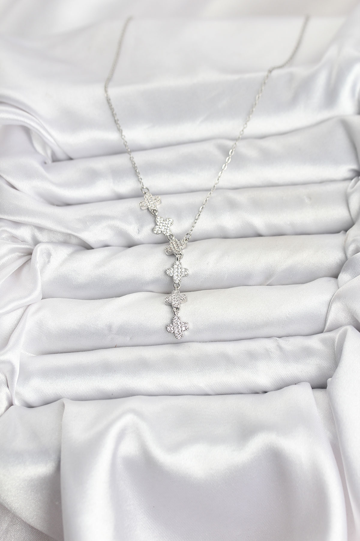 Tegan 316L Çelik Zincir Gümüş Renk Yonca Model Kadın Kolye TG27BKO10675