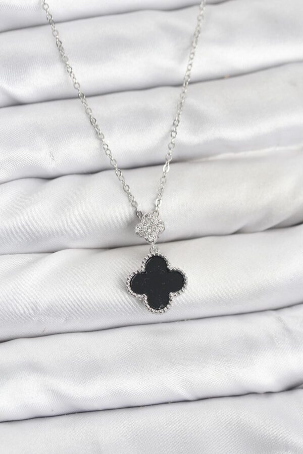 Tegan 316L Çelik Zincir Gümüş Renk Yonca Model Zirkon Taşlı Kadın Kolye TG27BKO10862