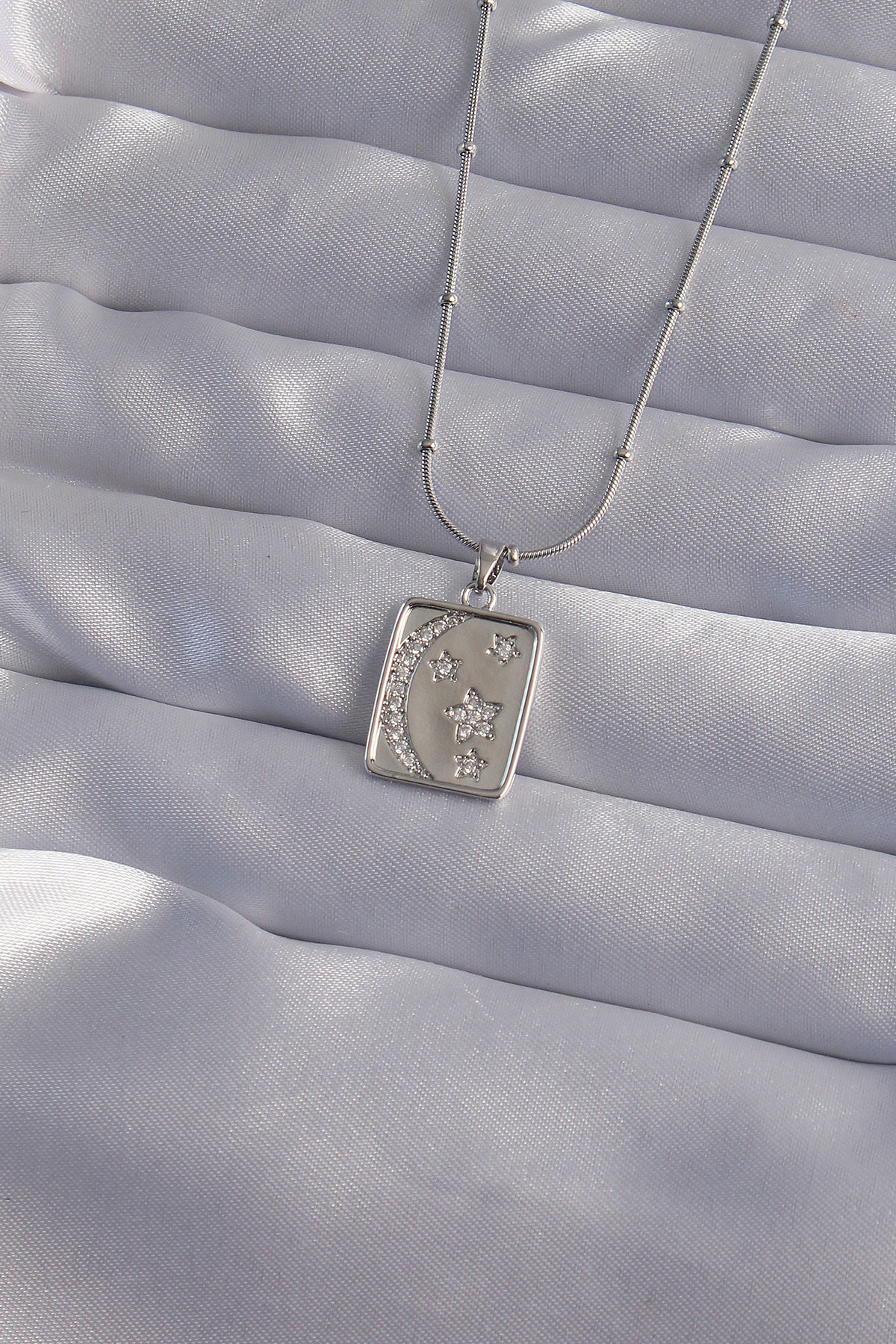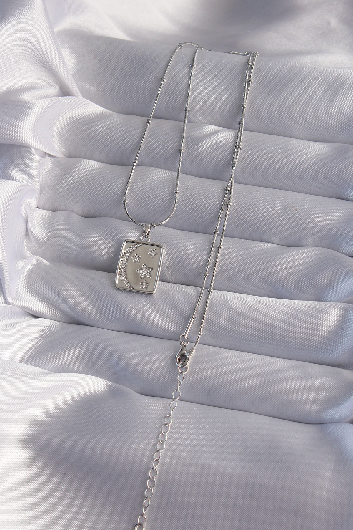 Tegan 316L Çelik Zincir Gümüş Renk Zirkon Taşlı Ay Yıldız Figürlü Tarot Kolye TG27BKO9022