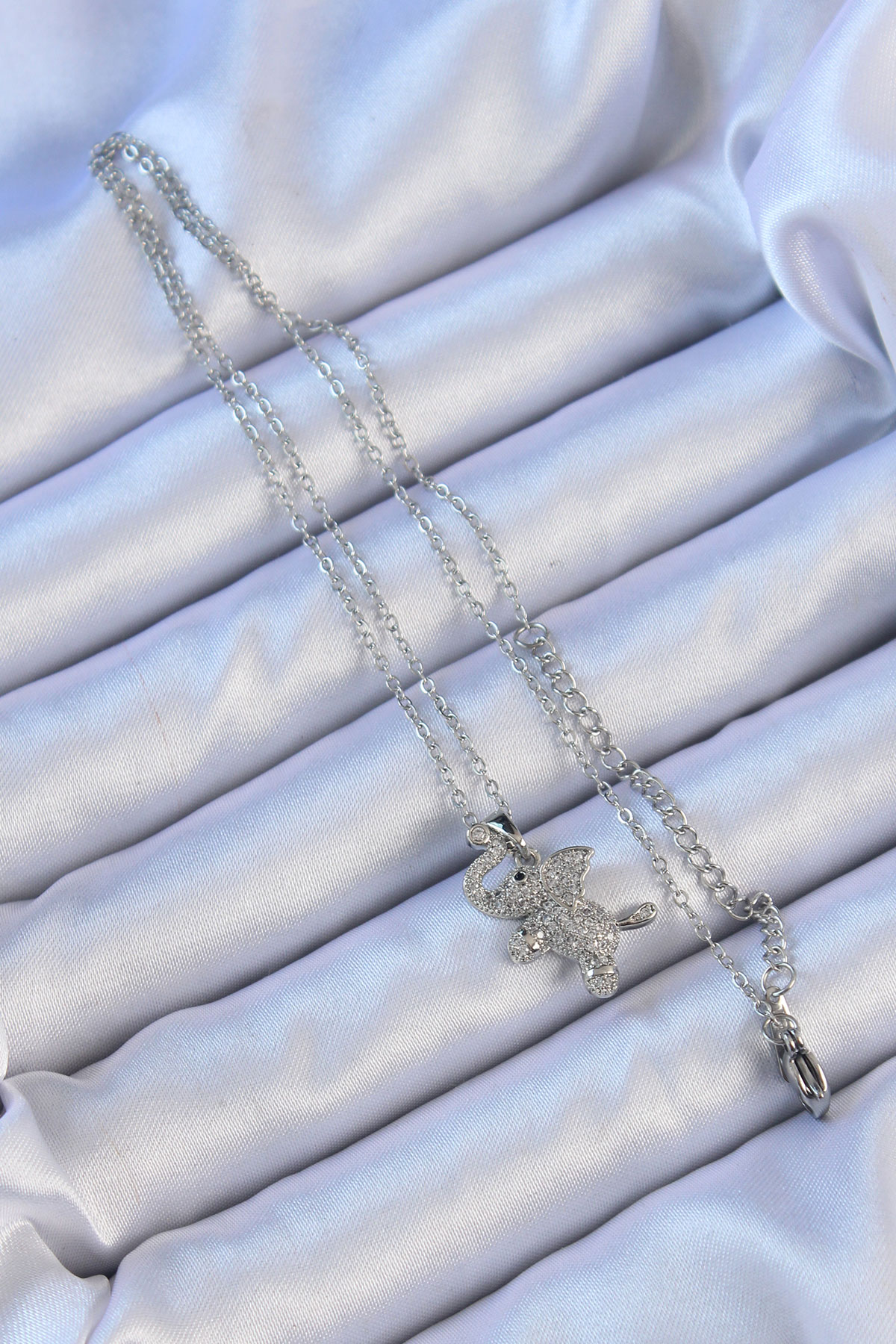 Tegan 316L Çelik Zincir Gümüş Renk Zirkon Taşlı Fil Kolye TG27BKO9092
