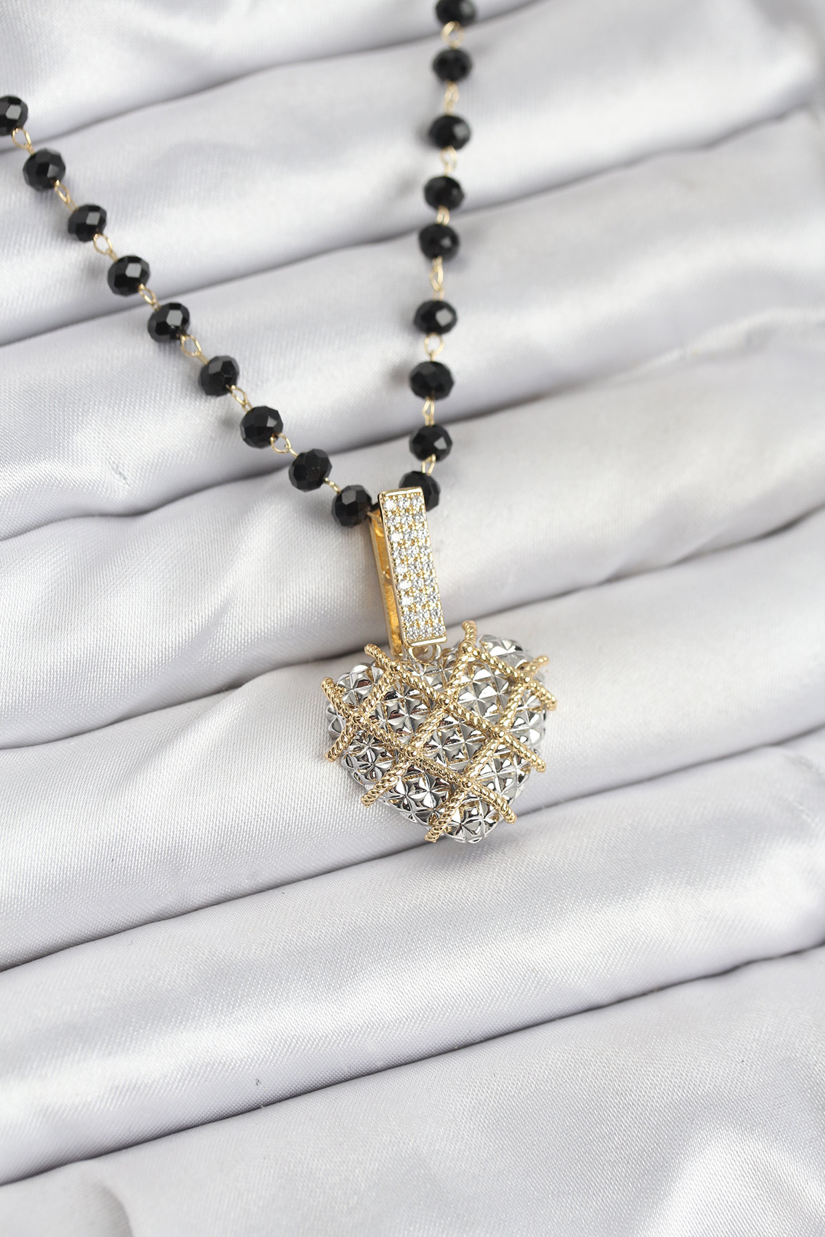 Tegan 316L Çelik Zincir Kristal Boncuklu Kalpli Kadın Kolye TG27BKO10562