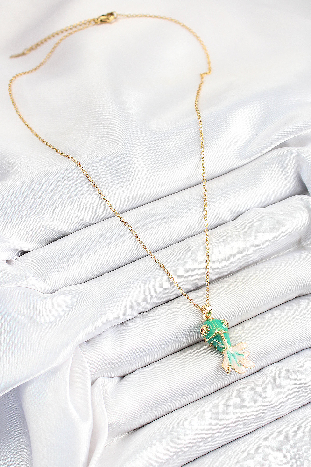Tegan 316L Çelik Zincir Yeşil Balık Model Gold Renk Kadın Kolye TG27BKO10323