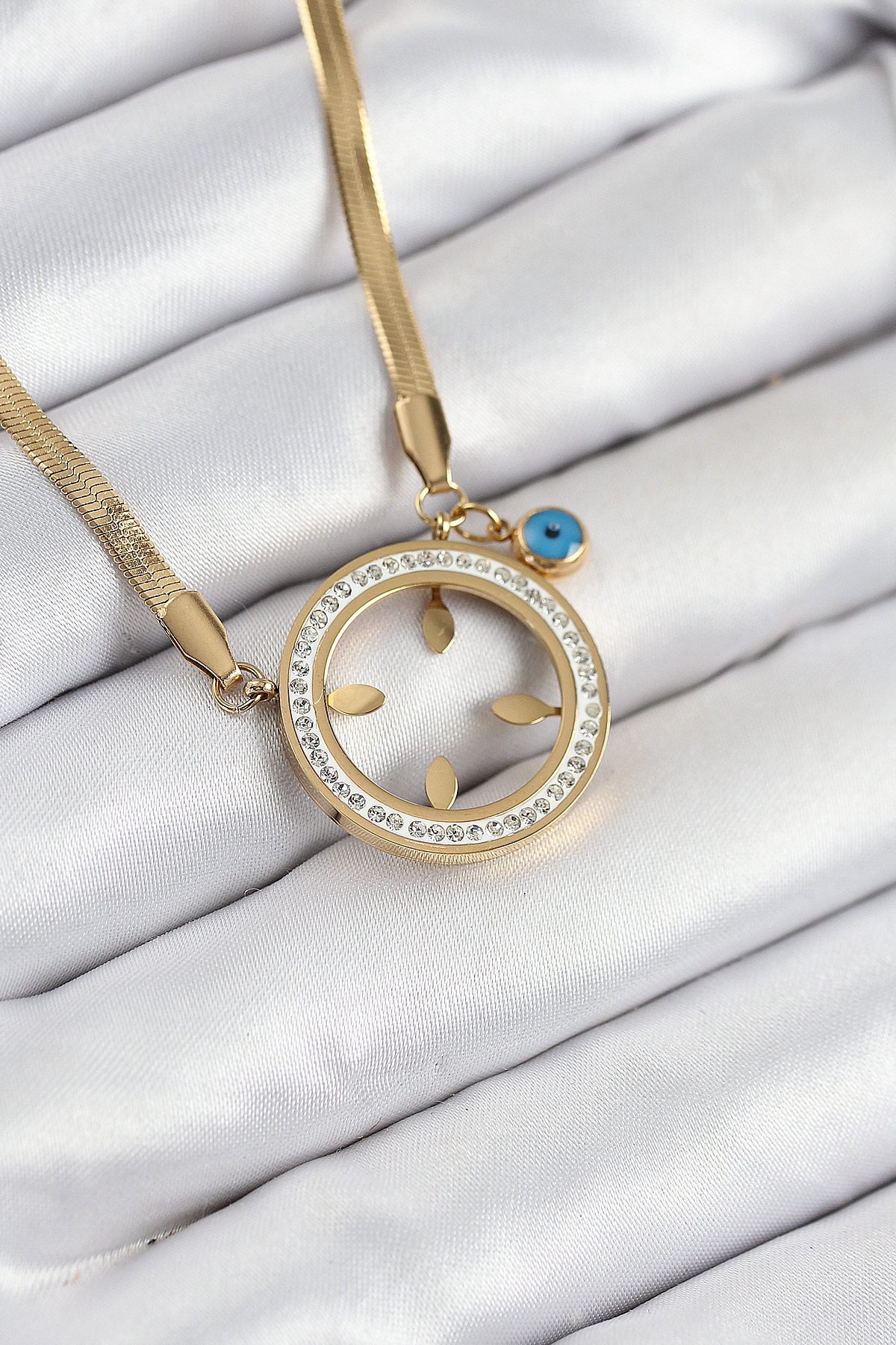 Tegan 316L Çelik Zirkon Taşlı Çeyrek Takılabilir Gold Renk Kadın Kolye TG27BKO10506