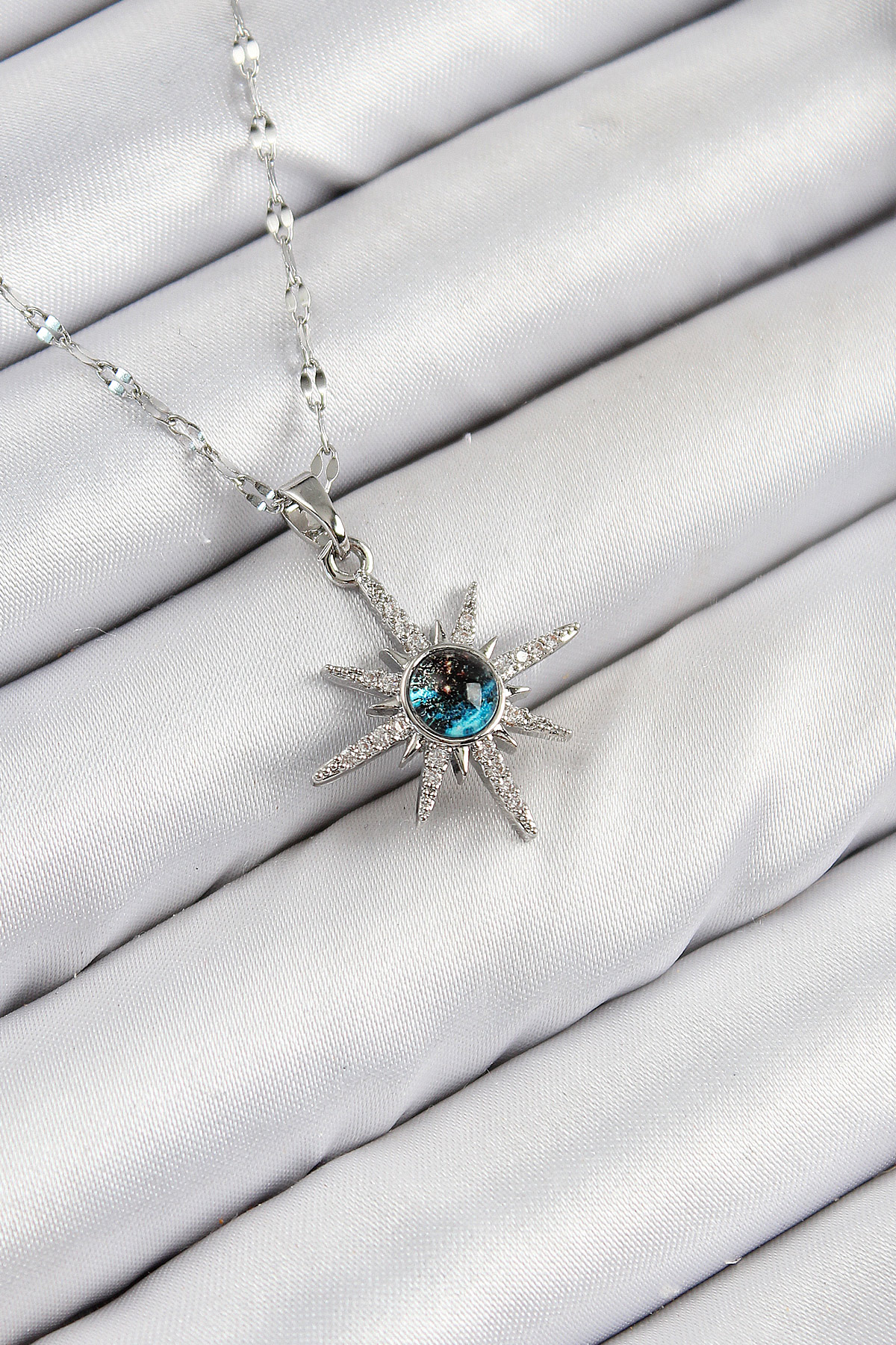 Tegan 316L Çelik Zirkon Taşlı Kutup Yıldızı Model Gümüş Renk Kadın Kolye TG27BKO10443