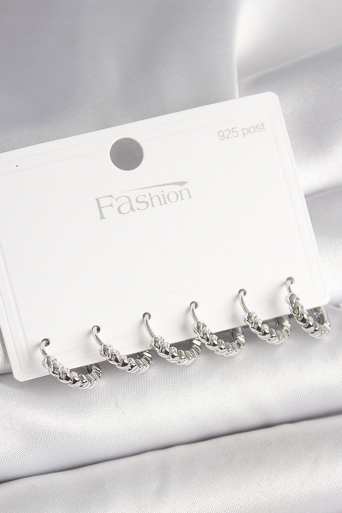 Tegan 925 Ayar Gümüş Çivi Pirinç Gümüş Renk Kalp İşlemeli Halka Model Kadın Küpe Seti TG27BKP10412