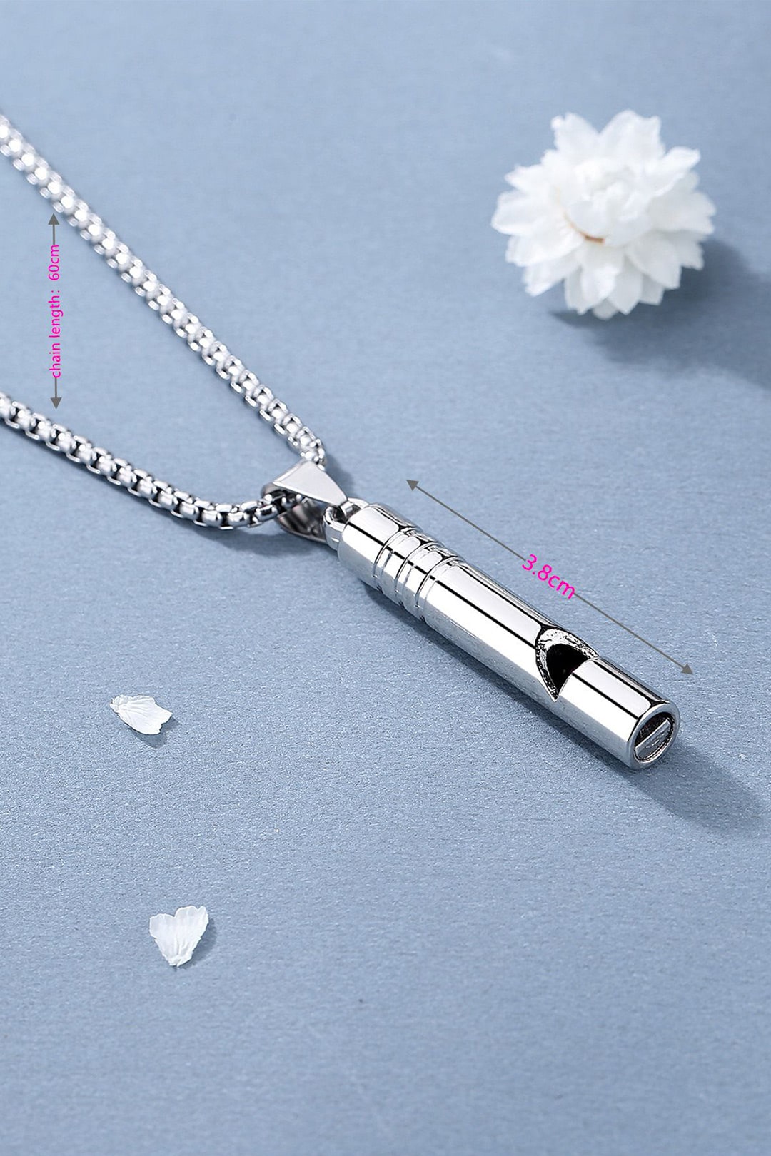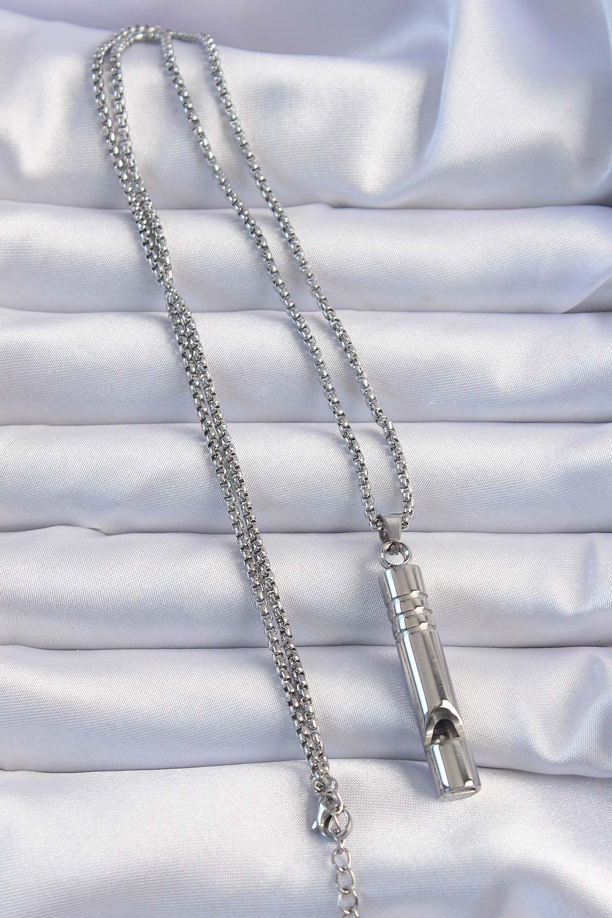 -316L çeliktir paslanmaz-Hayatta kalma durumlarında yüksek desibel ses çıkartabilir.-Düdük boyutu 3.8 cm dir. -Zincir uzunluğu 60 cm’dir. 5 cm uzatma zinciri vardır.-Deprem gibi afetlerde yerinizi belli etmede, çıkaracağı yüksek desibelli ses ile hayatınızı kurtarmada önemli bir yardımcı olabilir.-Şık aksesuar görünümü sayesinde kadın ya da erkek olarak herkesin kullanabileceği bir formda tasarlanmıştır. -Sadece bir aksesuar olarak kullanmak dileğiyle…